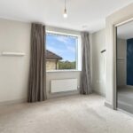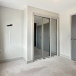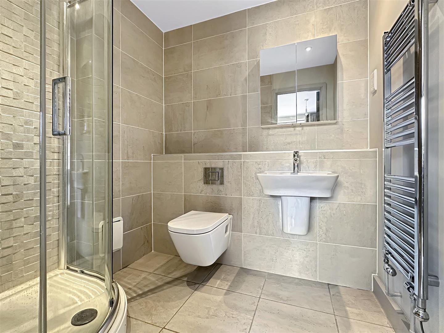 Double bedroom with built in wardrobe and ensuite shower room with tiled walls and part tiled flooring, chrome heated towel rail and air extractor fan