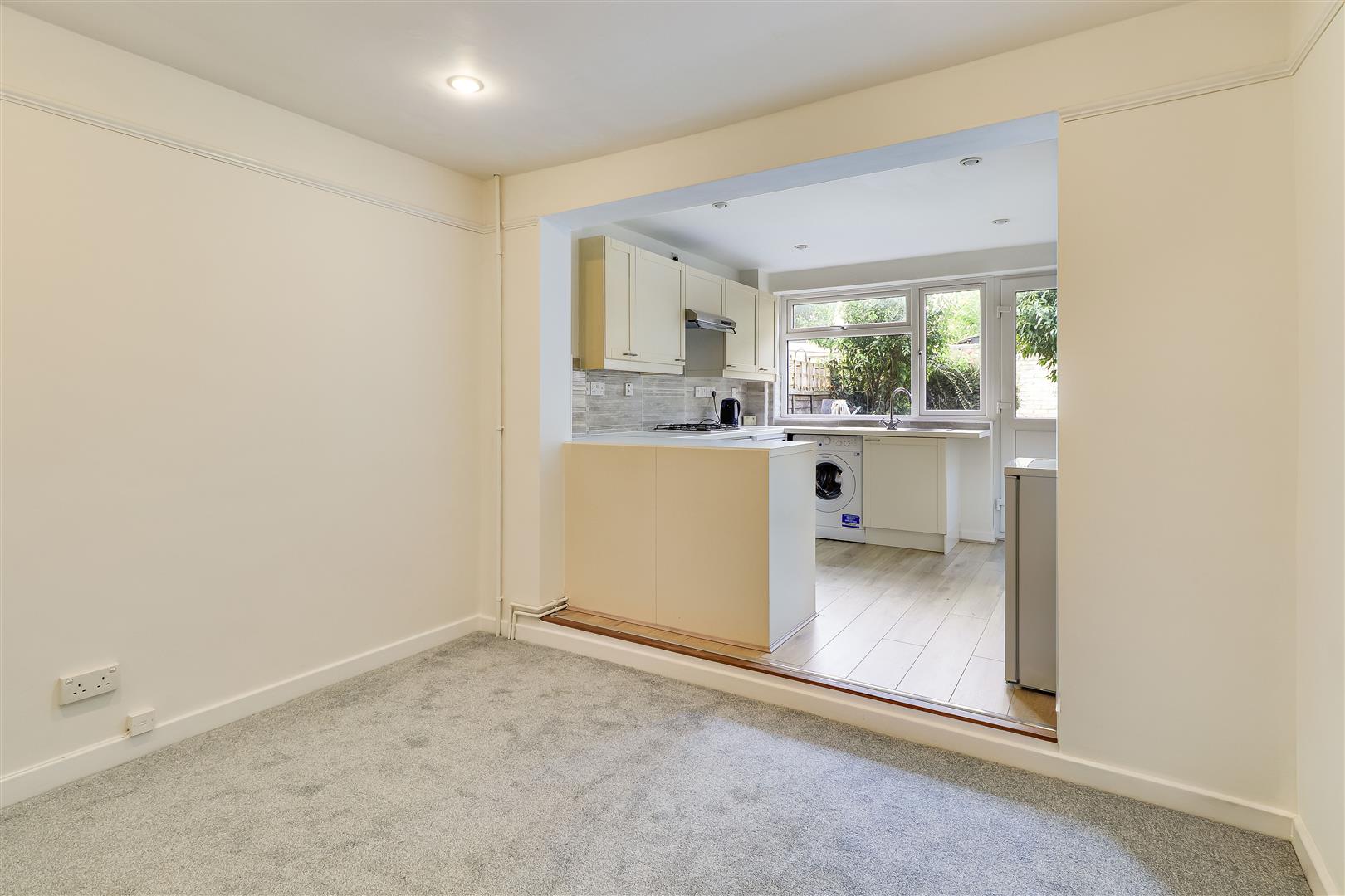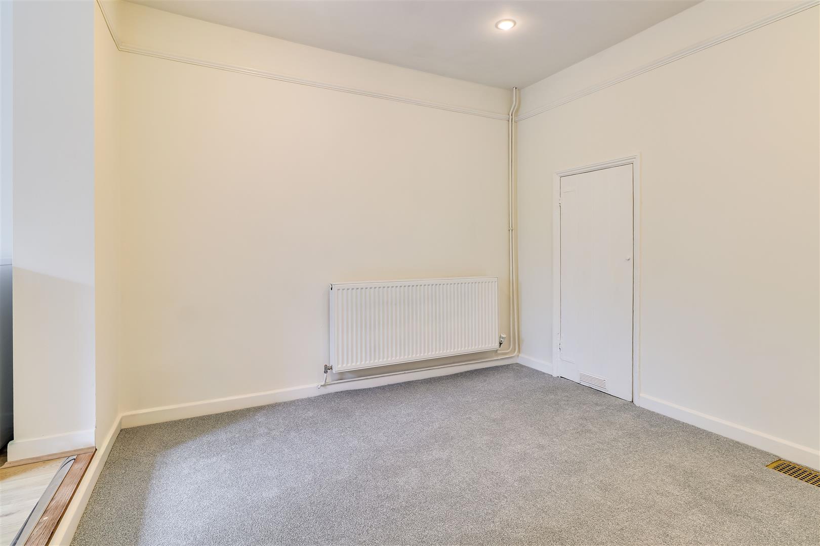 The accommodation comprises a timber and glazed front door, a sitting room with a cast iron fireplace with wood surround, a double-glazed sash window to the front elevation and a radiator. Inner lobby with stairs to first floor, open plan dining room/ kitchen with a sink unit and range of wall and base units, gas hob and oven, extractor fan, space for washing machine and fridge, finished with contemporary tiling, inset lighting and radiator.