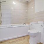 First floor landing leads to 2 double bedrooms and the bathroom. Bathroom with panel bath and shower over, hand wash basin, WC, extractor fan and radiator, finished with modern tiling