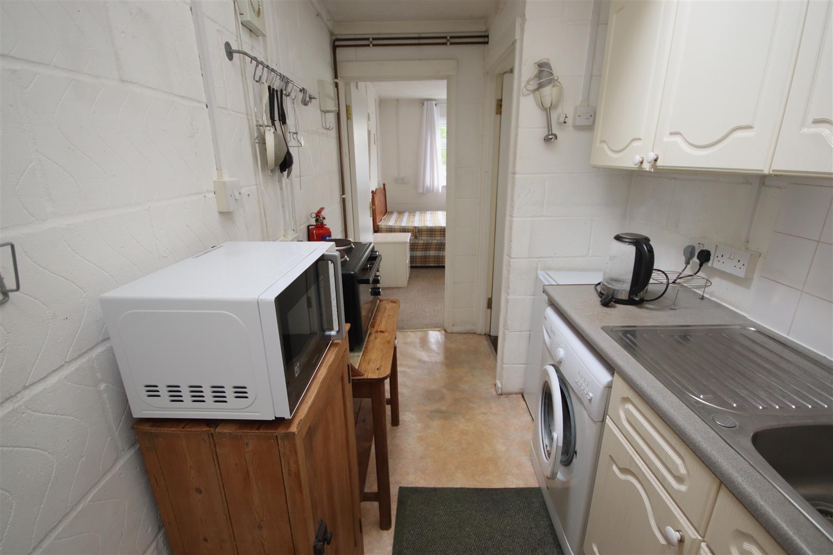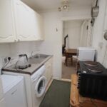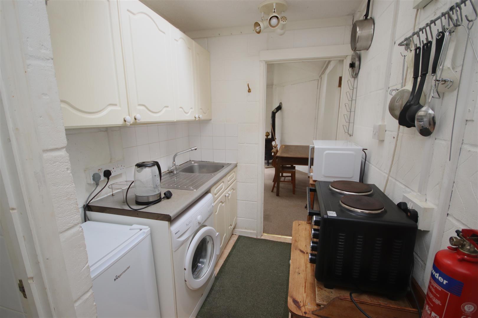 Kitchenette with washing machine, fridge and two ring electric hob
