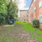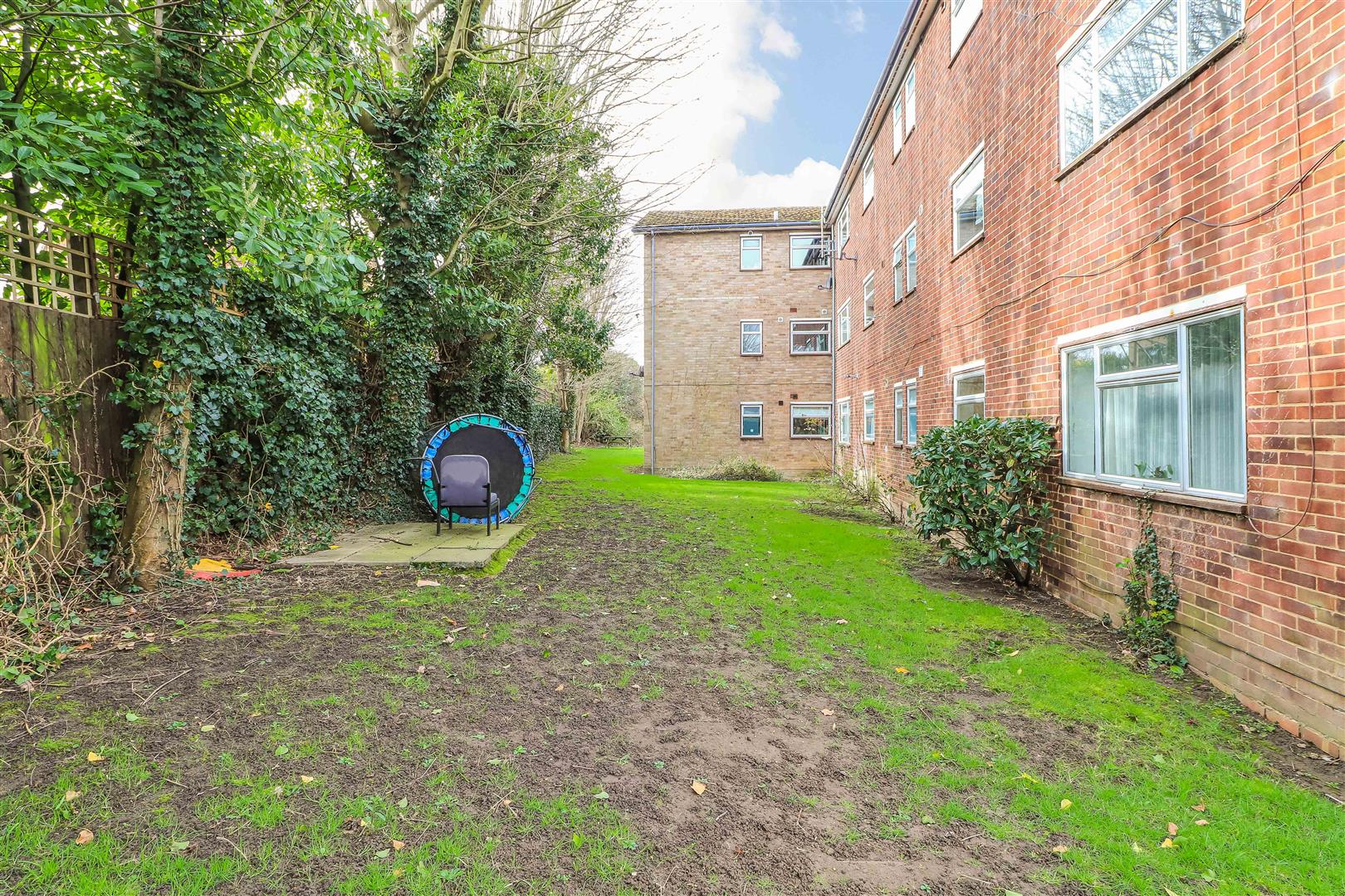 Outside - There are communal garden areas and a parking area for residents.
