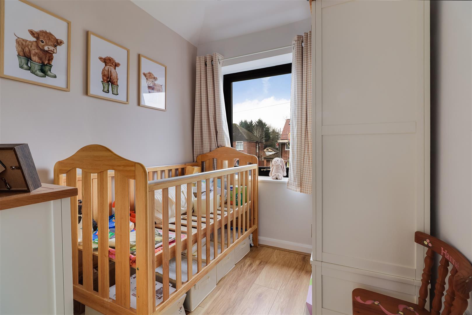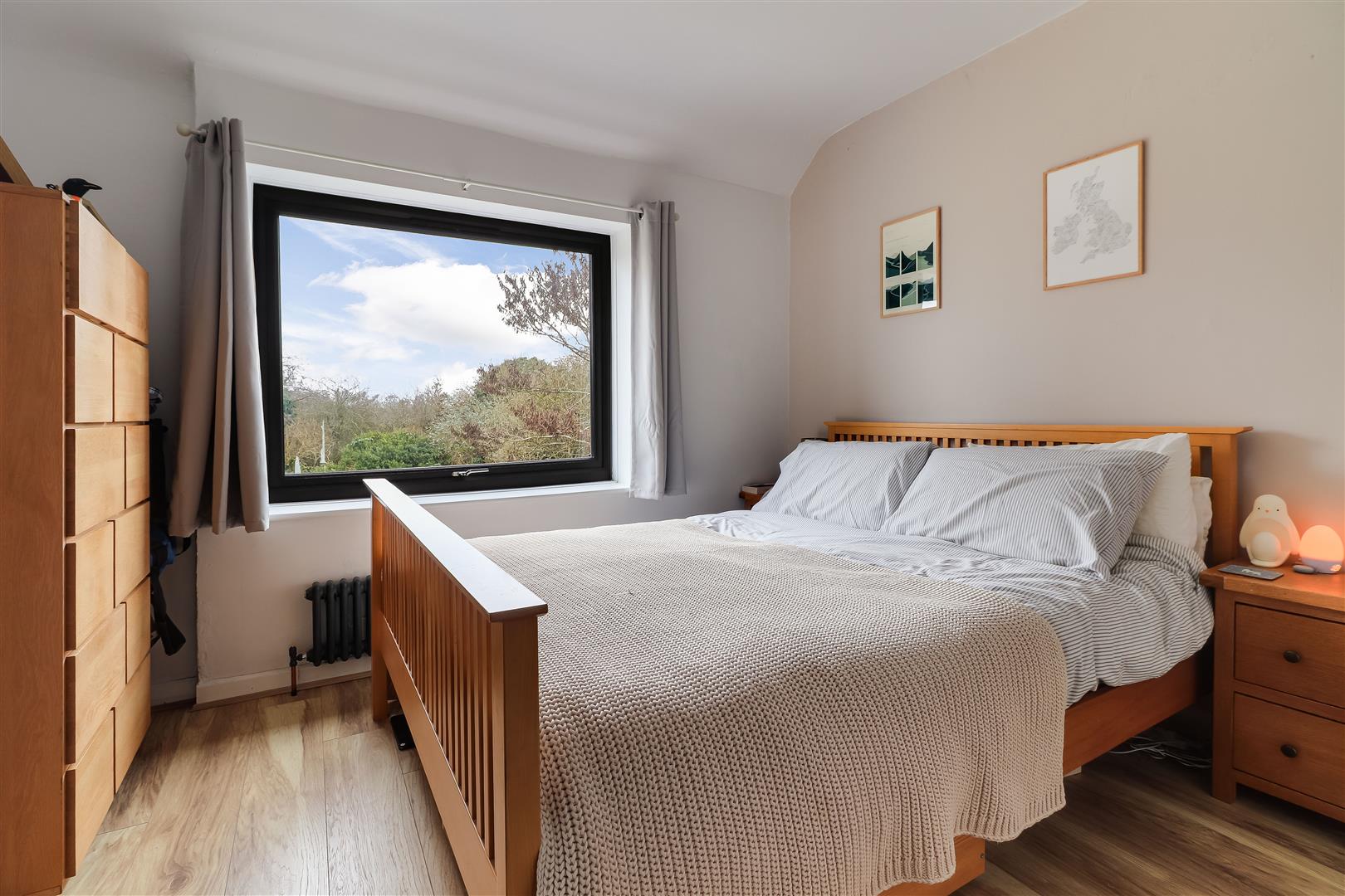 The principal bedroom sits at the front with a bay window and wall to wall bespoke built in wardrobes. Bedroom two is a further double room, quietly located at the back, offering lovely views of the garden. Bedroom three is a comfortable single room at the front.
