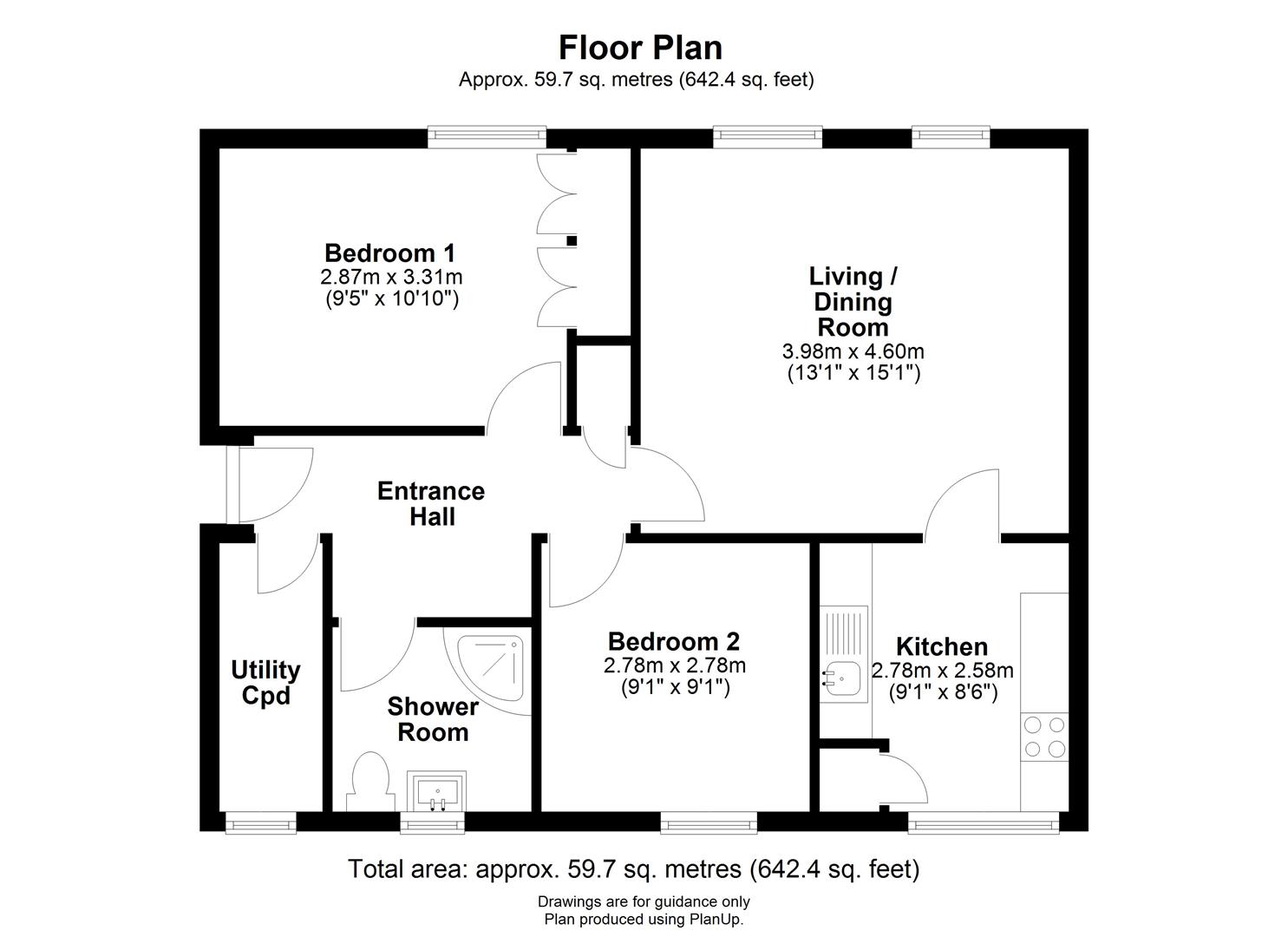 Accommodation in detail, First floor, Entrance Hall, Entrance door, radiator. Doors leading into bedrooms, the living room and the bathroom. Shower Room: Three-piece suite comprising a large shower cubicle, WC and wash hand basin. Part tiled walls. Obscure double-glazed window to the rear, radiator. Living Room: A light and spacious room with two double-glazed windows to the front, a radiator, and a kitchen door. Kitchen Range of wall and base level units and worktop surfaces, housing a stainless-steel sink and drainer. Plumbing for washing machine, gas and electric cooker points, space for fridge/freezer, tiled splash backs. Double-glazed window to the rear. Utility Cupboard Double-glazed window to rear aspect, boiler. Bedroom One, Double-glazed window front, radiator and built-in double wardrobe: Bedroom Two, Double-glazed window to the rear, radiator.