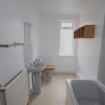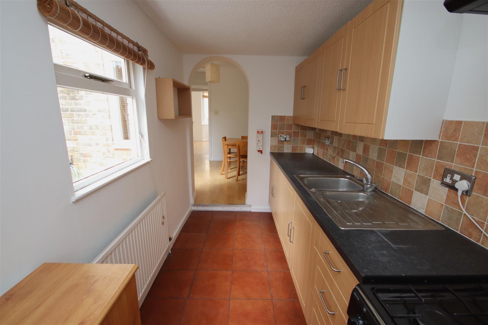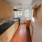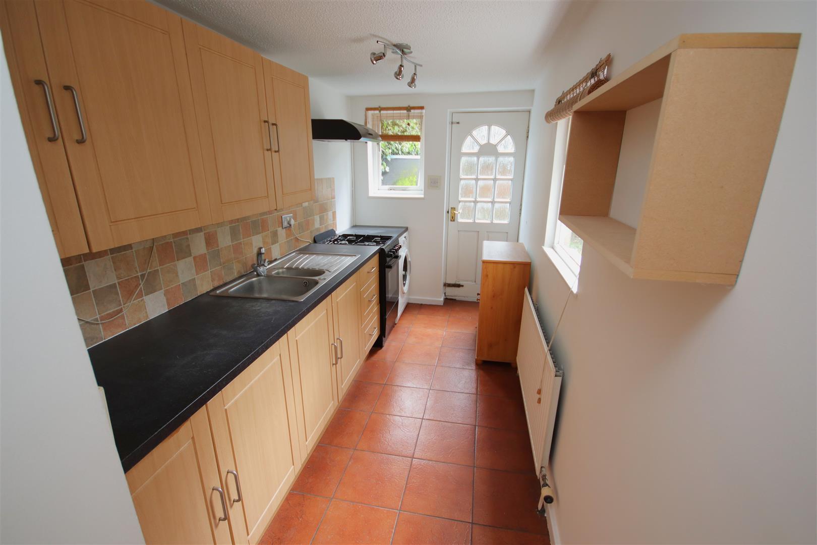 Fitted kitchen with gas cooker and washing machine and with back door leading to rear enclosed garden