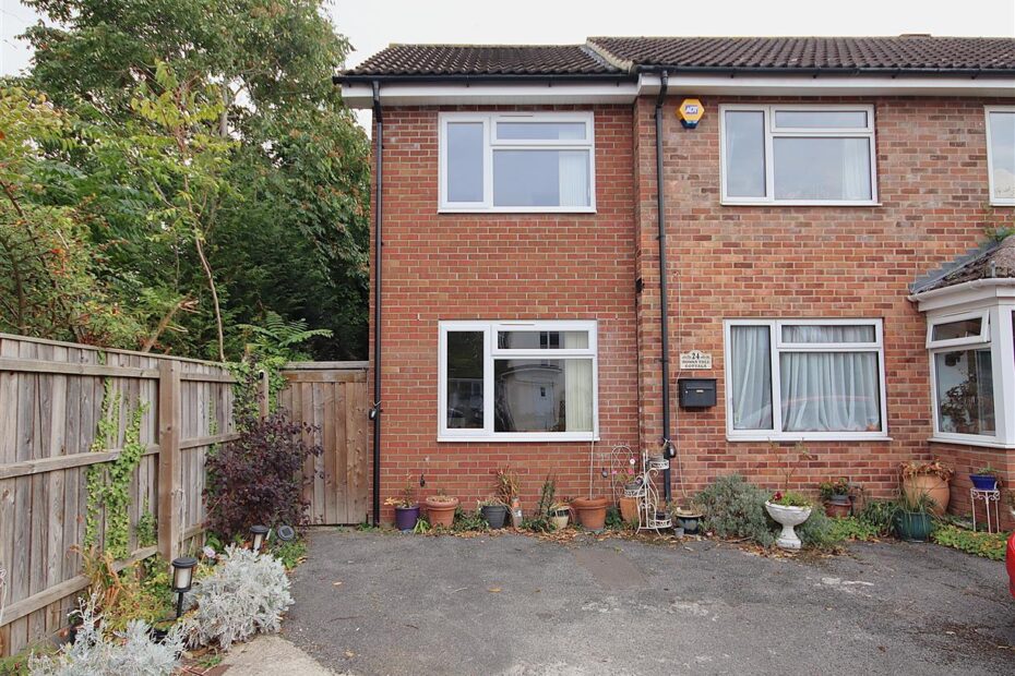 Enclosed rear garden mostly laid to lawn with shed and side access