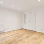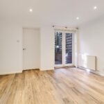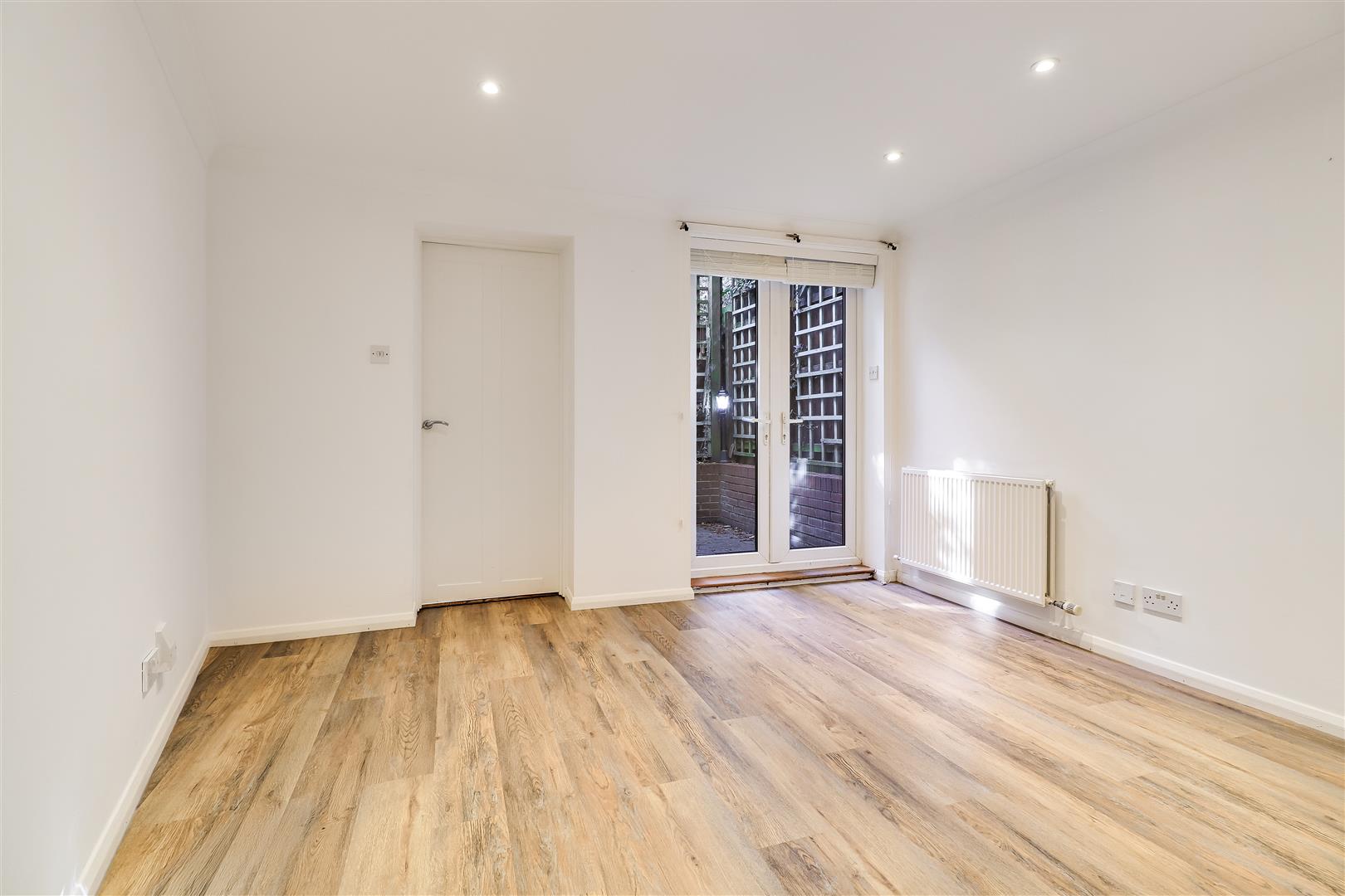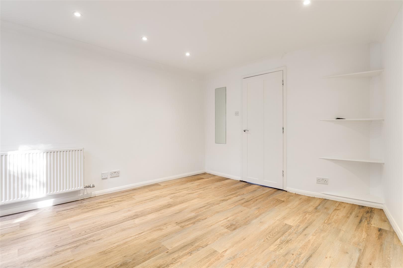 The entrance hall is on the ground floor, off Carlyle Road, and has a spiral staircase leading down to the lower ground floor level. There is a built in storage cupboard and doors to both bedrooms.