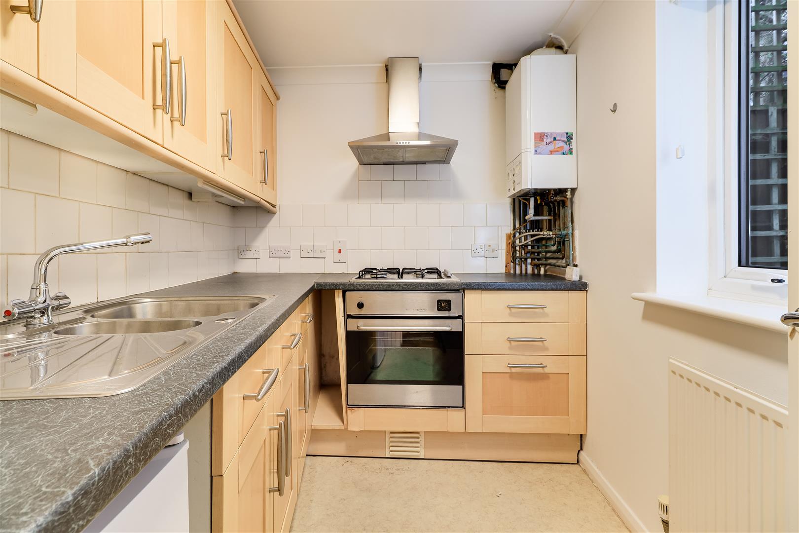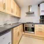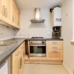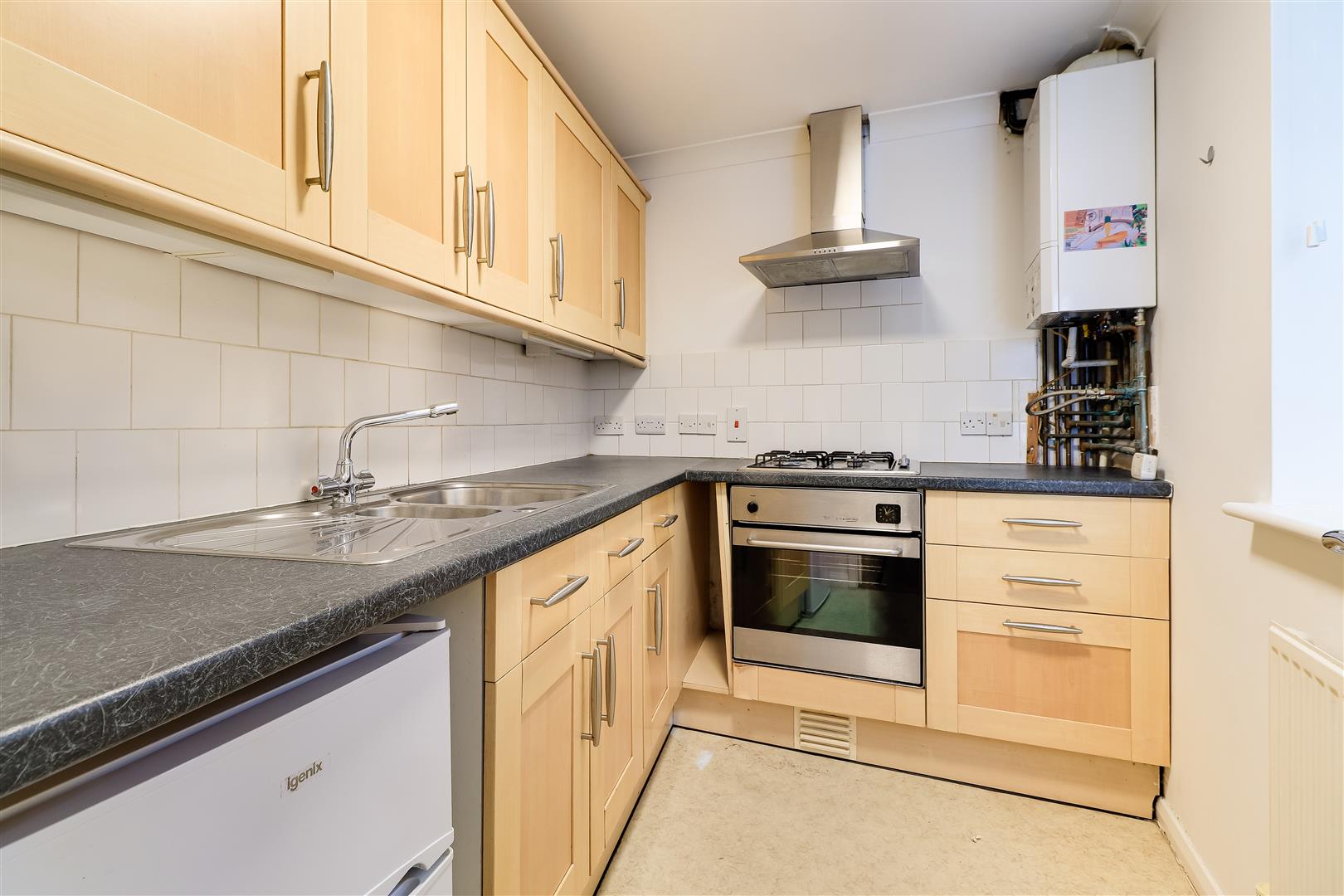 The kitchen leads off the sitting room and comprises a range of wall and base units and work surfaces housing a stainless steel sink and drainer, integrated electric oven and gas hob with extractor over. There is a wall mounted gas fired boiler.