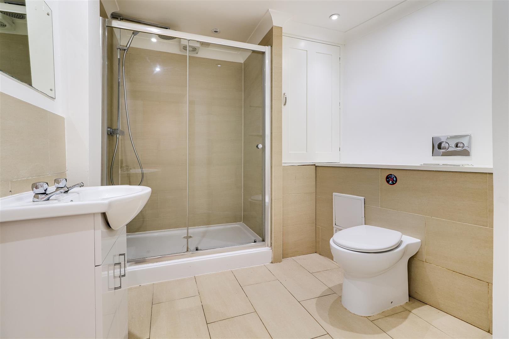 The lower ground floor has a hallway leading to the large three piece modern shower room which has tiled flooring and part tiled walls as well as a cupboard which houses the washing machine.