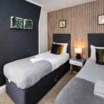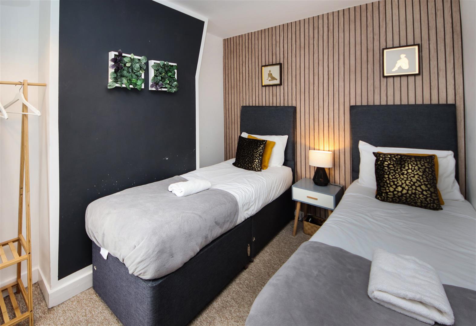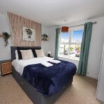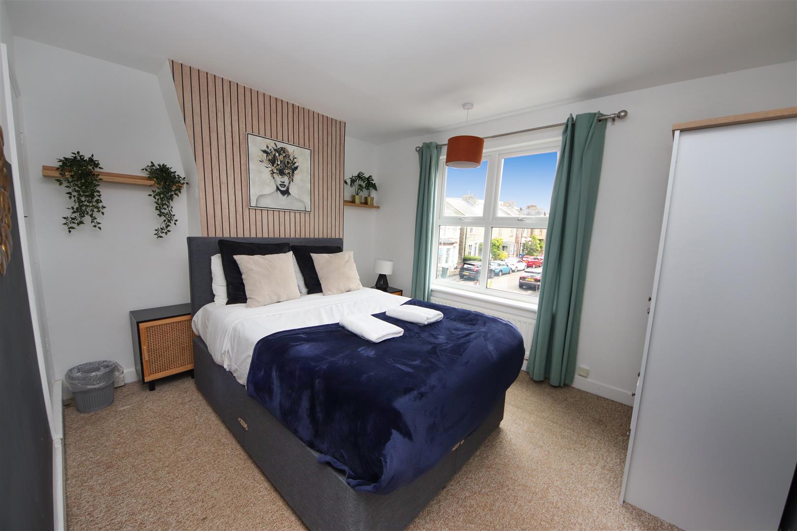 Front double bedroom with double bed and mattress, wardrobe and bedside tables