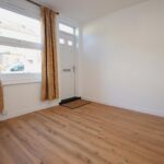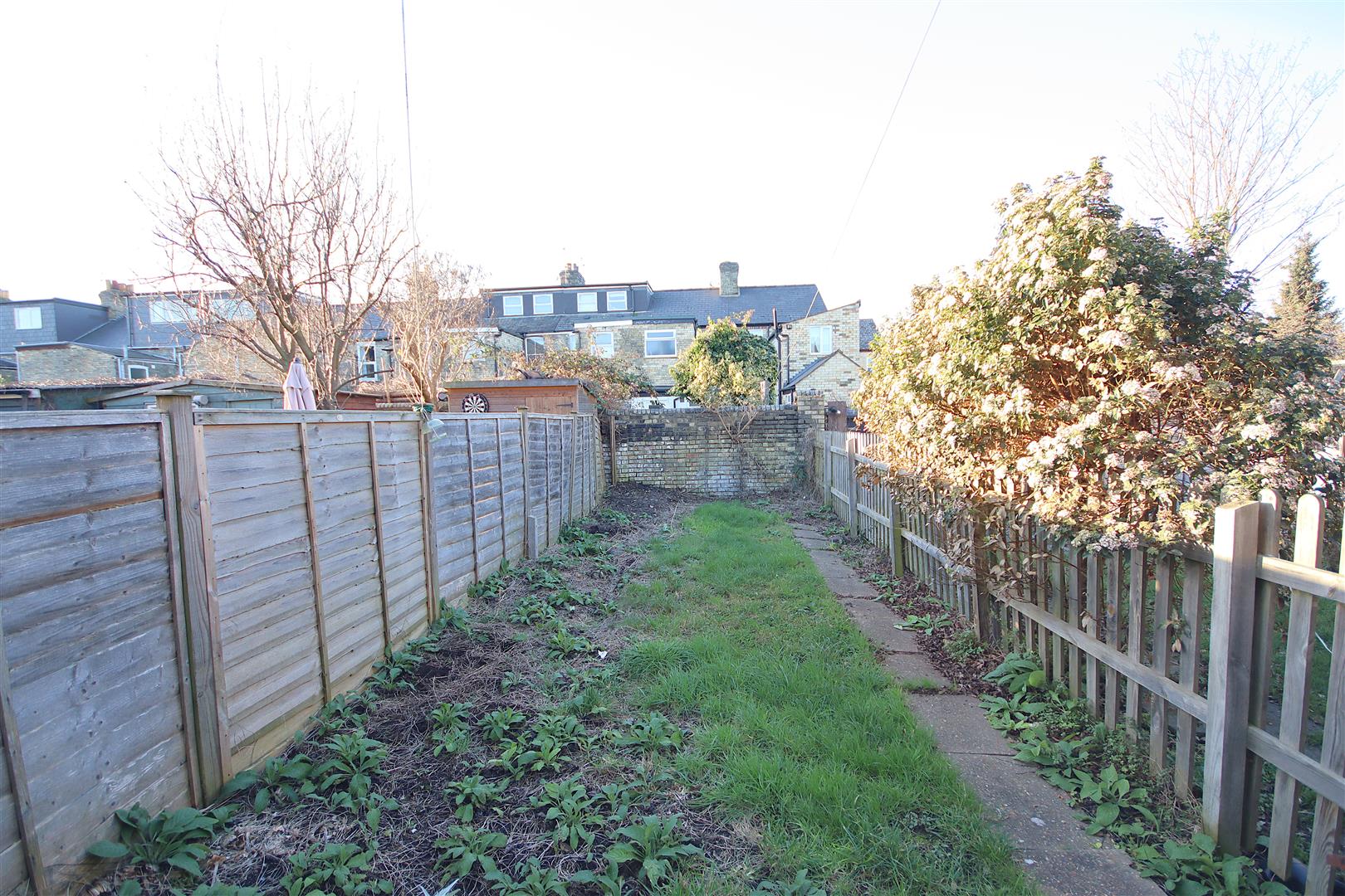 Rear garden, mostly laid to lawn with shared side passage and street parking available (permit not required)