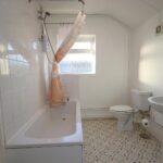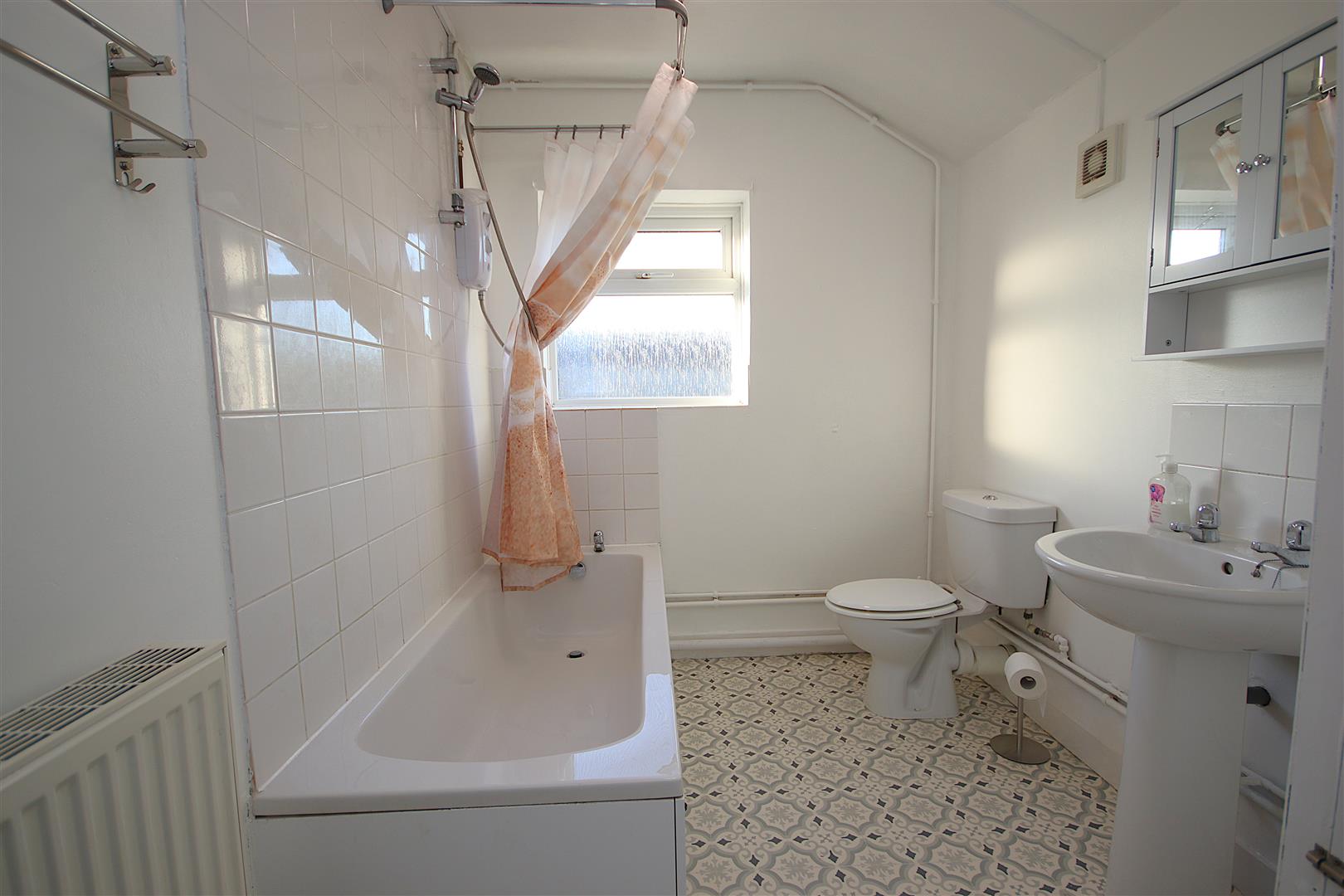 Rear first floor bathroom with electric shower over bath, WC and hand basin
