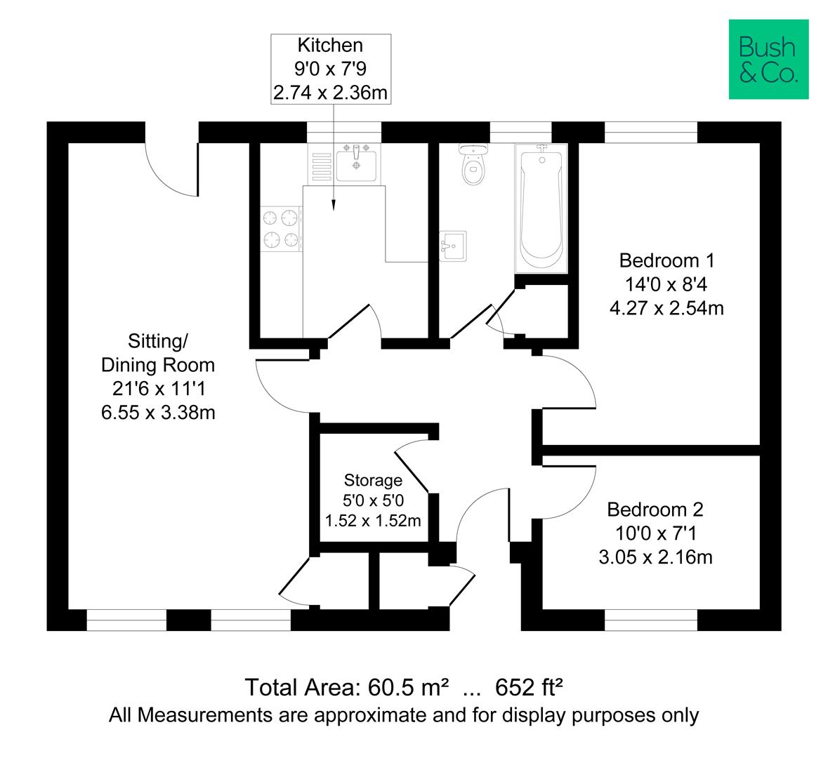 - 60.5 sqm / 652 sqft
