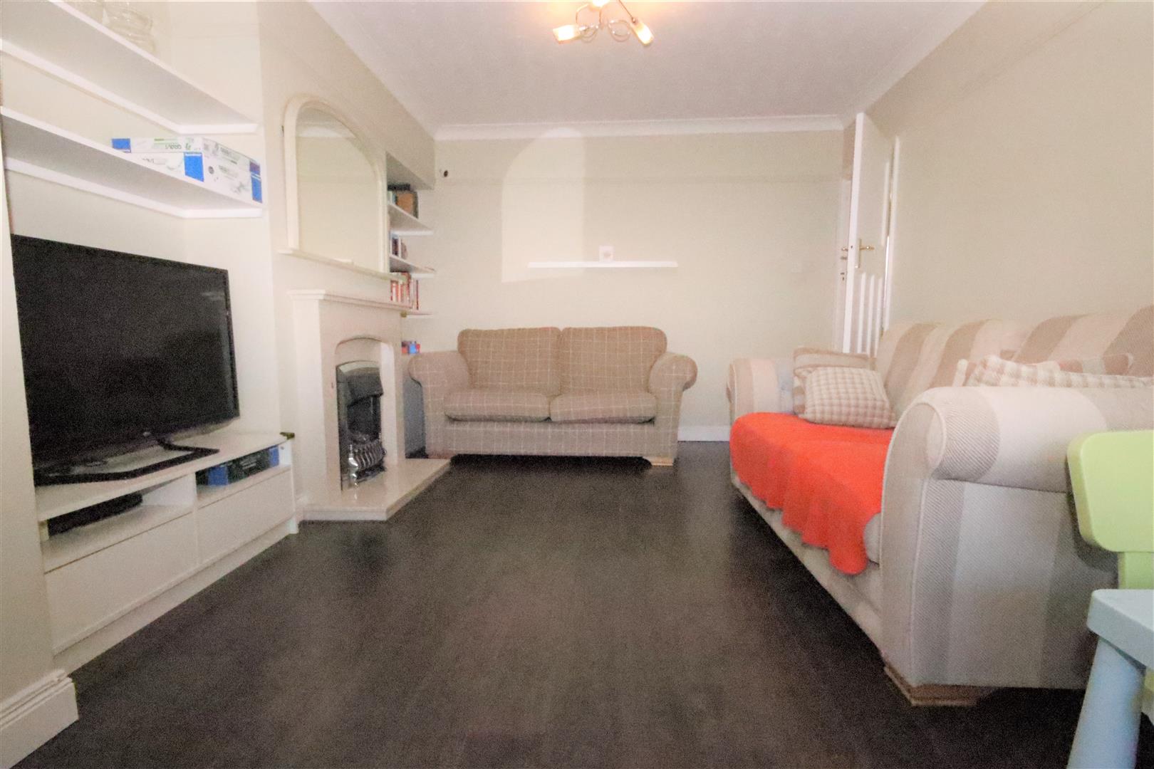 Front reception room with electric fire and laminate flooring