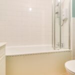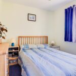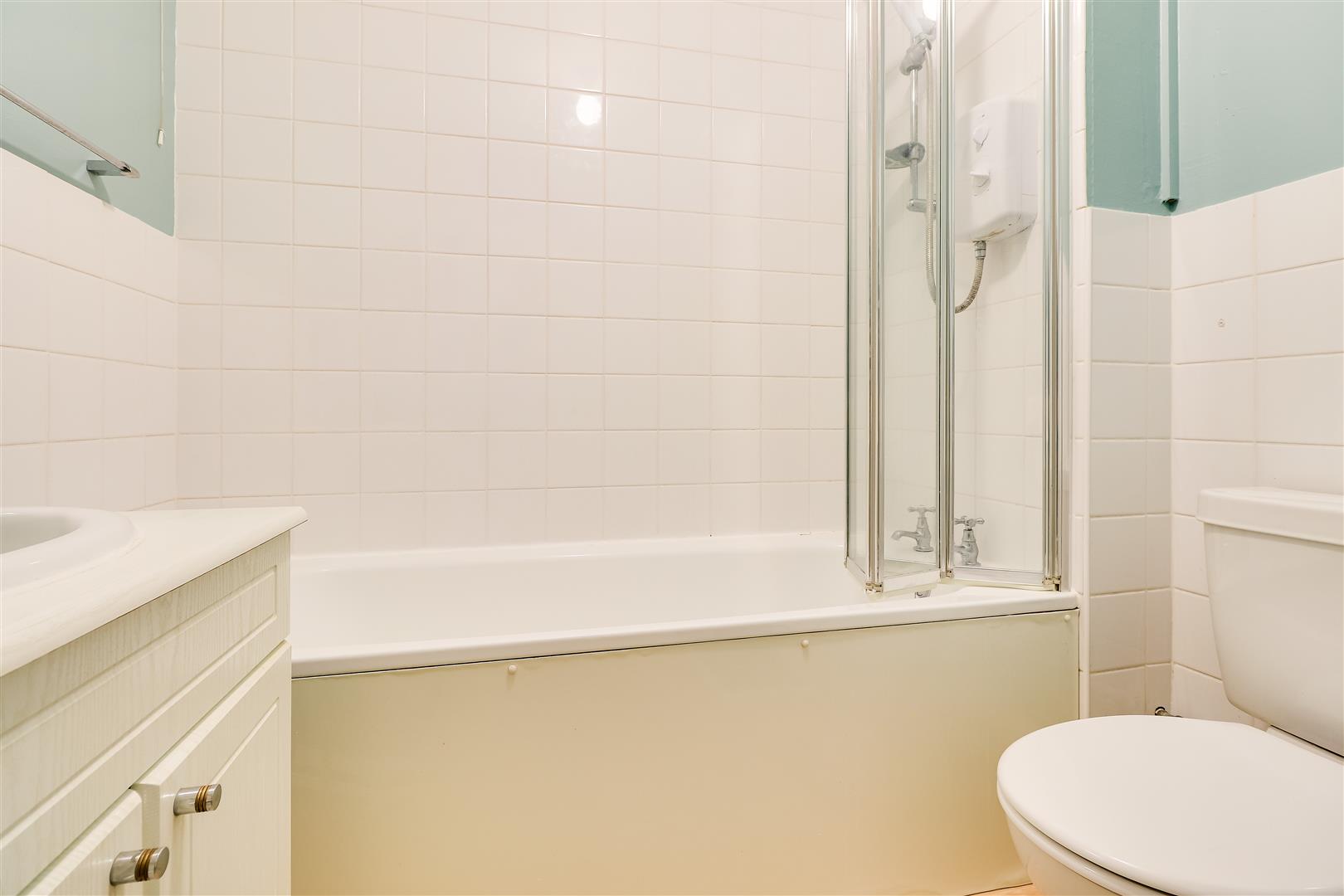 Bedroom 1 has a double-glazed window overlooking the rear garden, fitted wardrobes, and an electric radiator. Bedroom 2 has a double-glazed window overlooking the rear garden. The bathroom has a paneled bath with a shower over, WC and hand basin, with tiled surround and an electric towel rail.