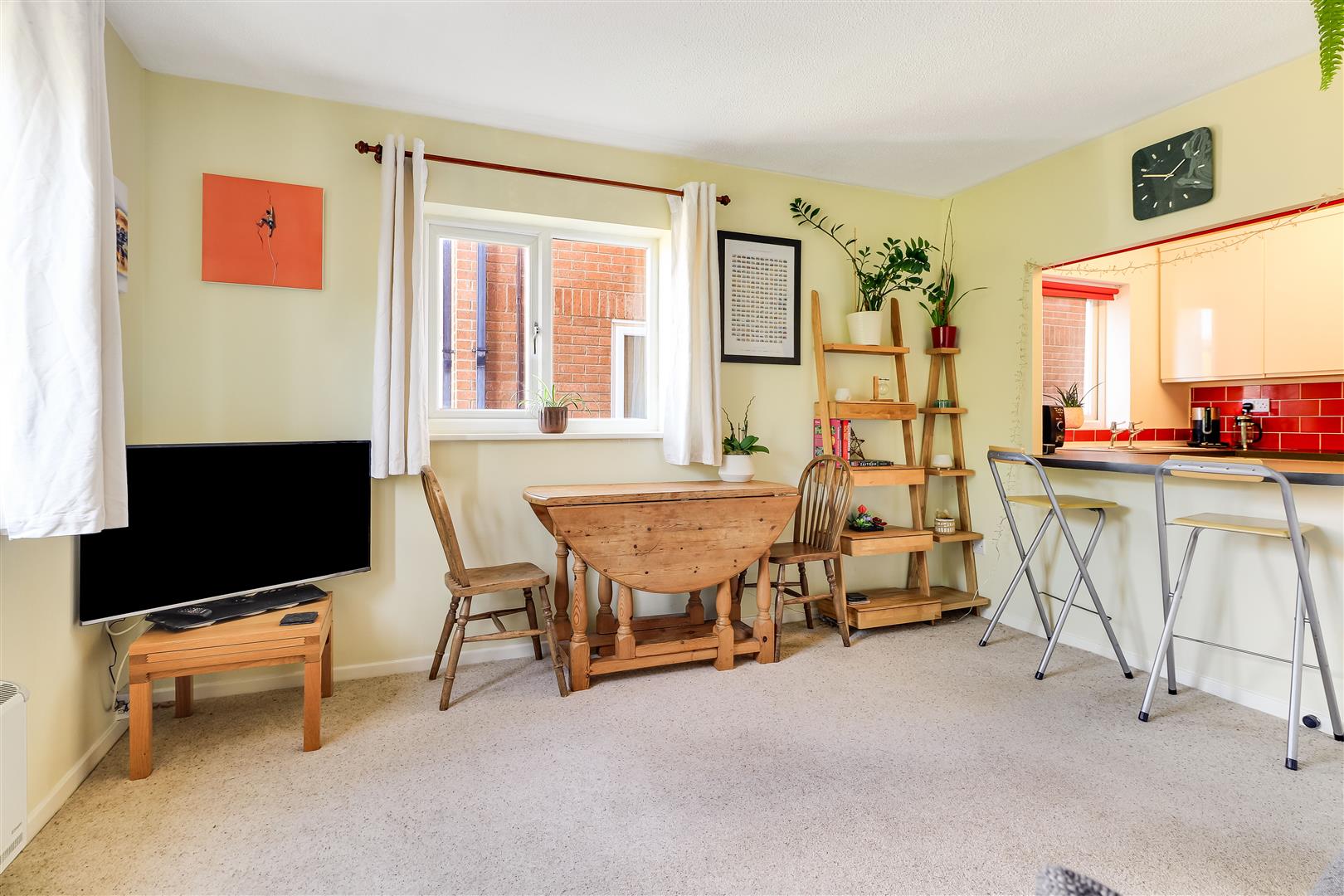 The accommodation in detail. There is a ground-floor communal entrance hall, a timber door to the entrance hall, a storage cupboard under the stairs, a built-in airing cupboard with a hot water tank, a storage cupboard, and an electric heater. Sitting / dining room with double-glazed windows to the front elevation, and an electric heater. From the sitting/dining room, there is an opening to the kitchen with a breakfast bar. A kitchen well fitted with a sink unit and a range of wall and base units, electric hob and oven, fridge space, plumbing for washing machine and dishwasher, tiled surrounds, and a window to the side elevation.