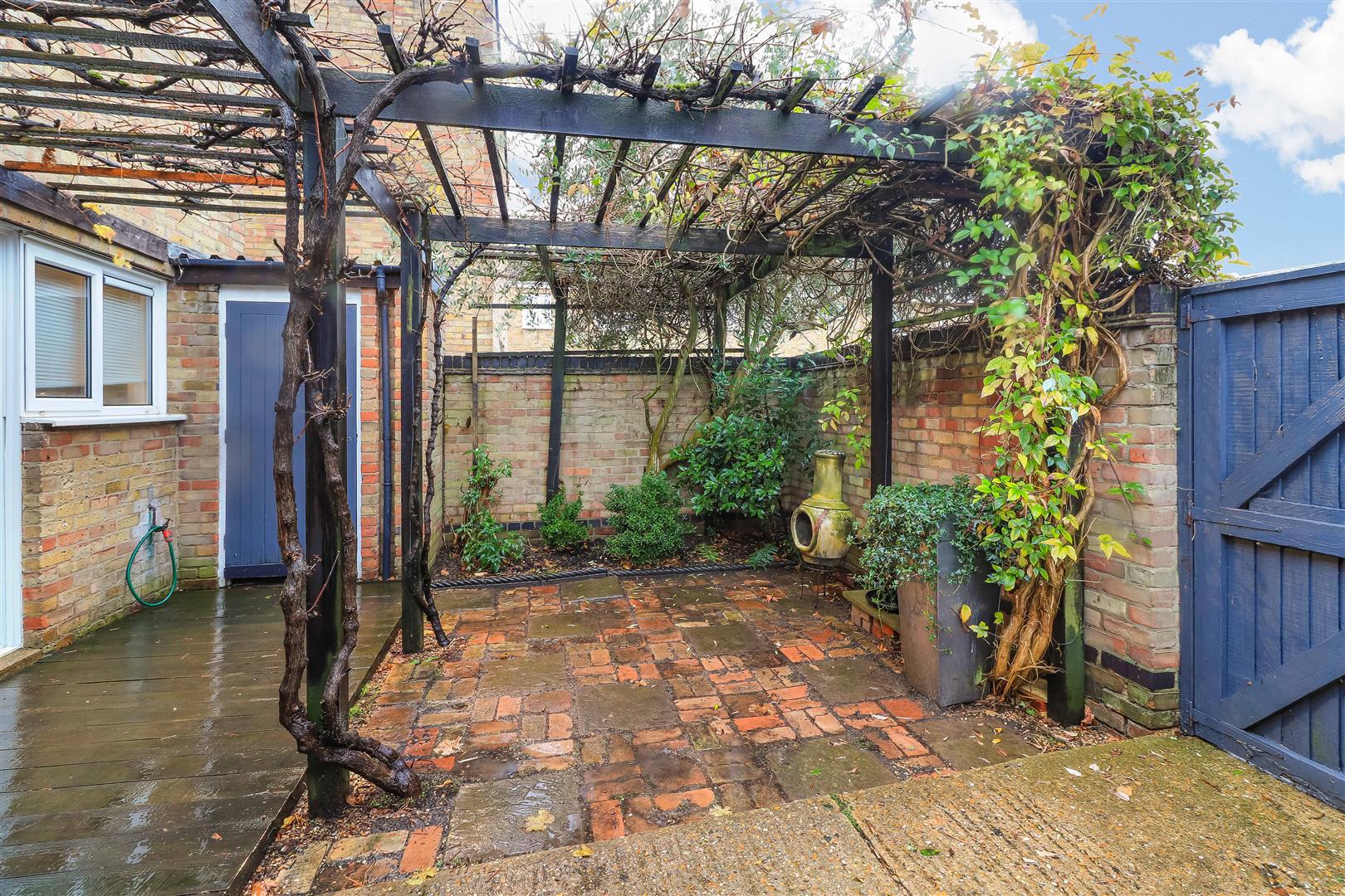 Outside, the property is set back from the road behind, and there is a front garden behind a low picket fence. The private walled rear garden is a real feature of note, has 3 patio areas, one being under a pergola, the remainder laid to lawn, there are shrub borders, with mature planting. There are 2 storage cupboards and a wooden storage shed. A secure wooden gate gives rear access.