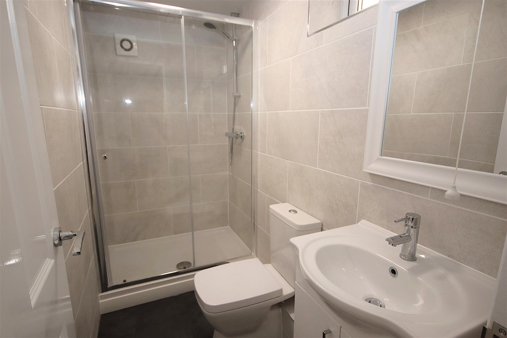 Ground floor modern shower room with shower enclosure, WC and hand basin