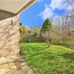 Spacious living room with door leading to small garden