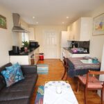 Modern fitted kitchen/living room Bosch white goods included (fridge-freezer, washing machine, dishwasher, electric hob and oven) and living area