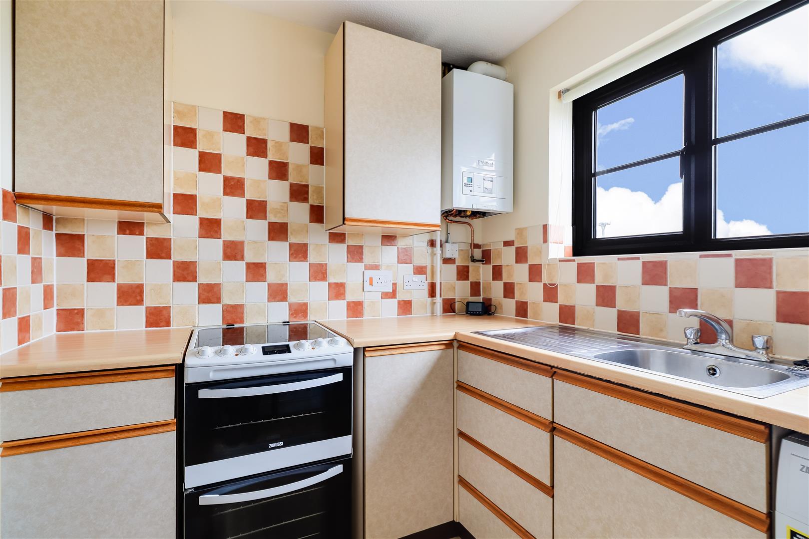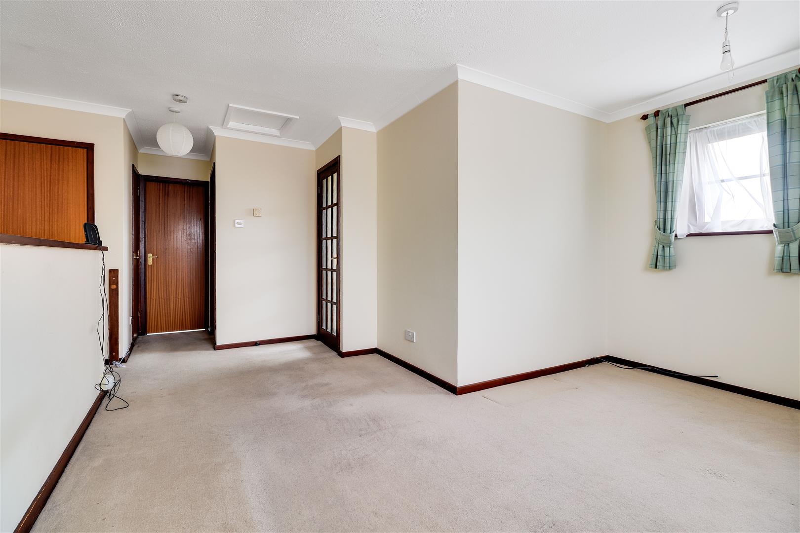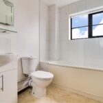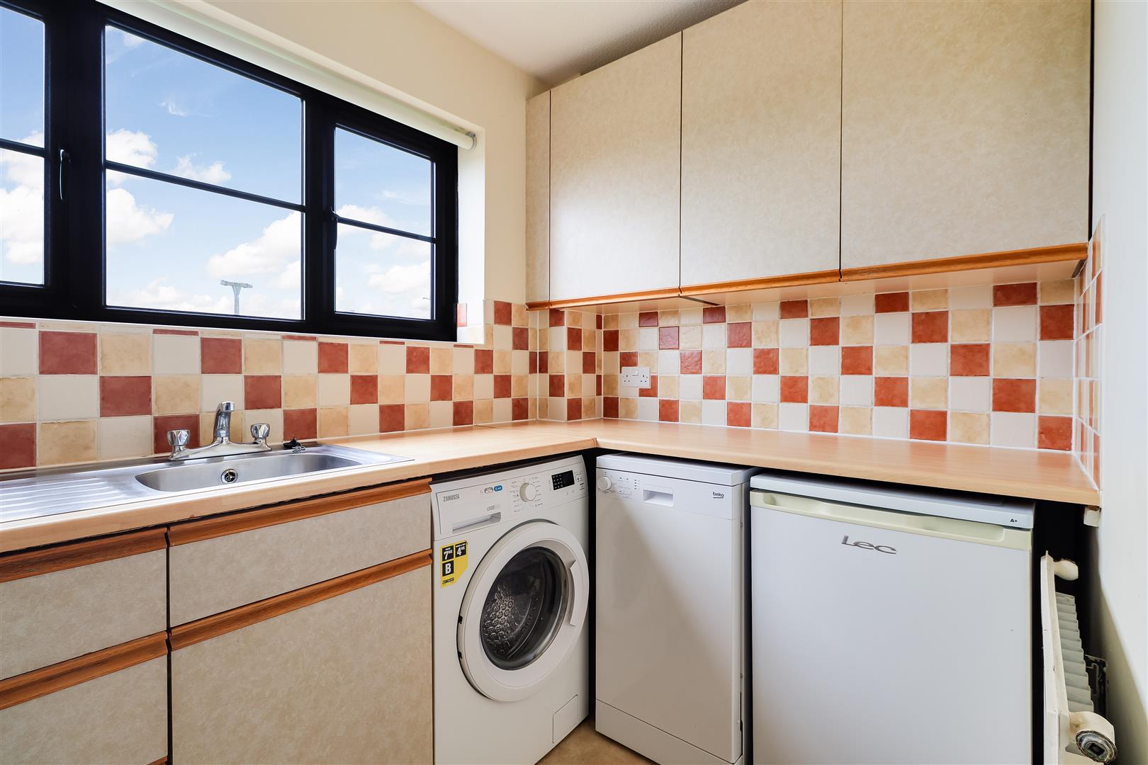 There is a living room at the front which has dual aspect windows and plenty of storage courtesy of three useful built in cupboards.