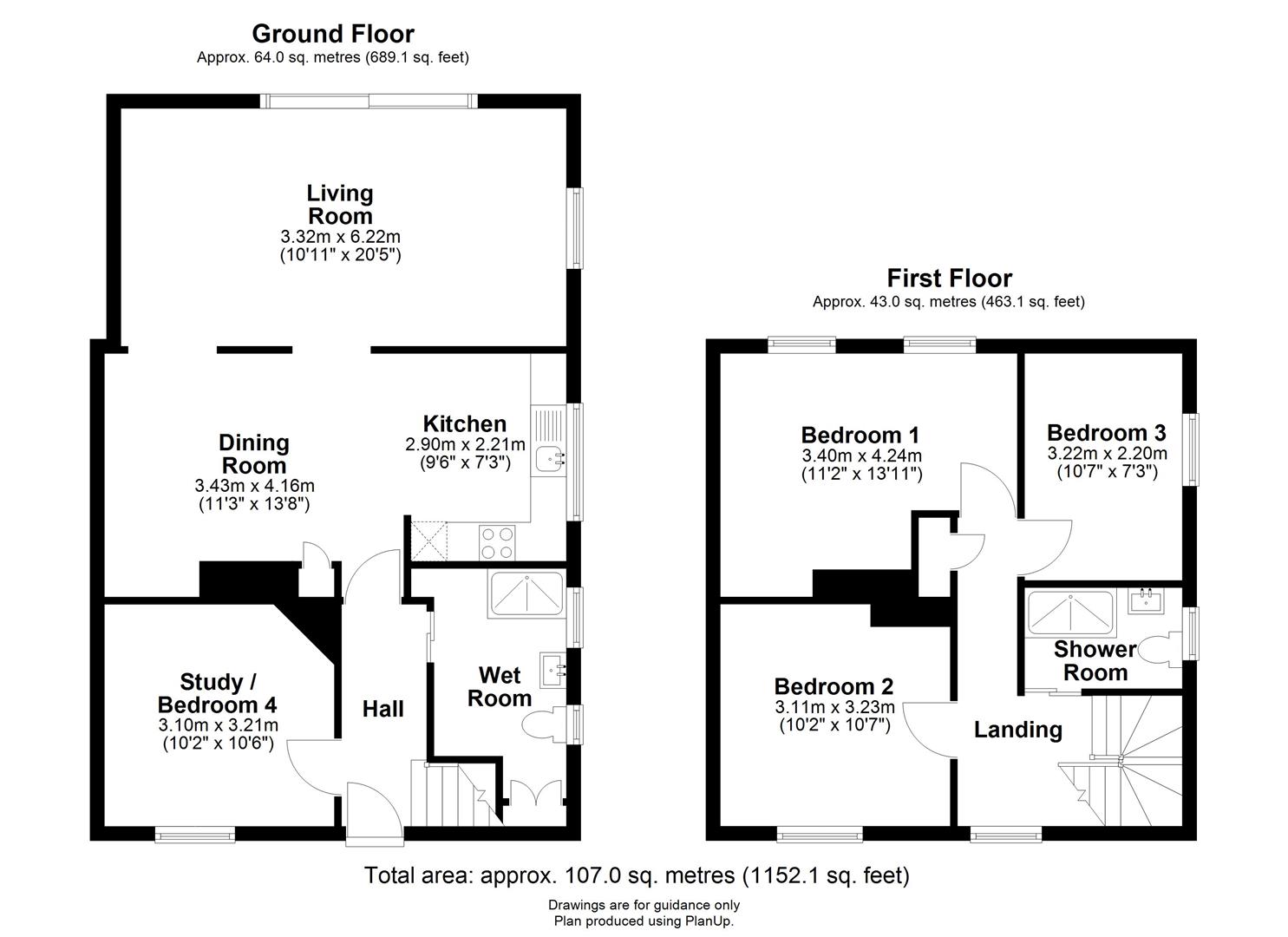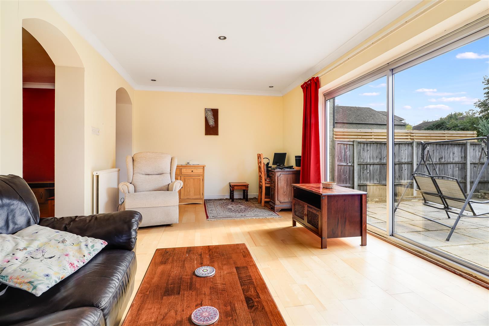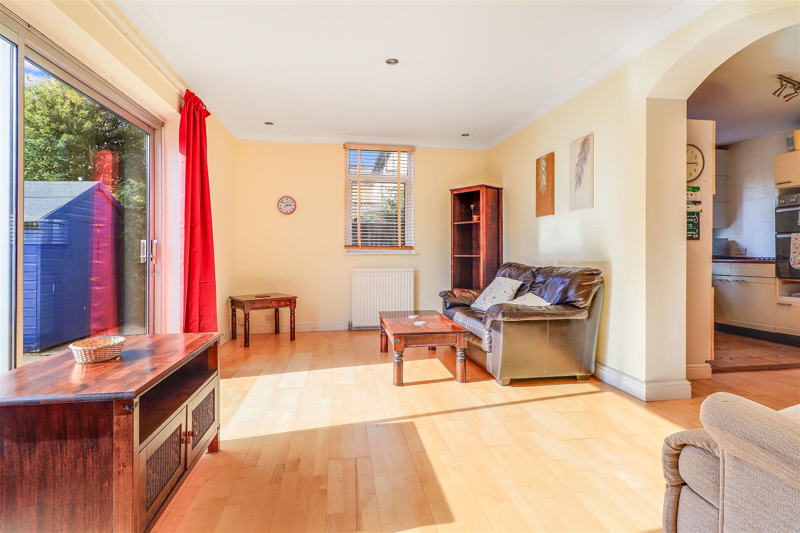 The entrance door opens into the hallway, which has stairs rising to the first floor. There is a study/fourth bedroom at the front which allows easy access to the wet room across the hallway with shower, w.c and wash hand basin as well as a cupboard housing the gas fired boiler. The kitchen/dining room has a range of wall and base units with integrated electric double oven and hob as well as plumbing for washing machine. The spacious dining area leads to the full width extension across the back which provides beautifully light living space with sliding patio doors opening out to the garden.