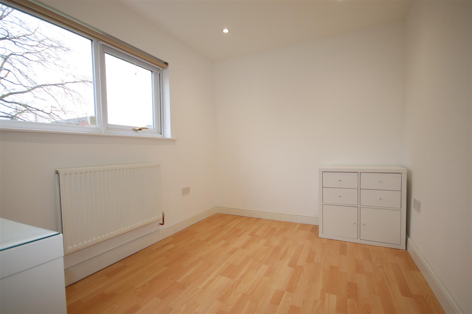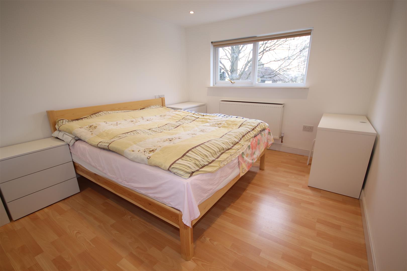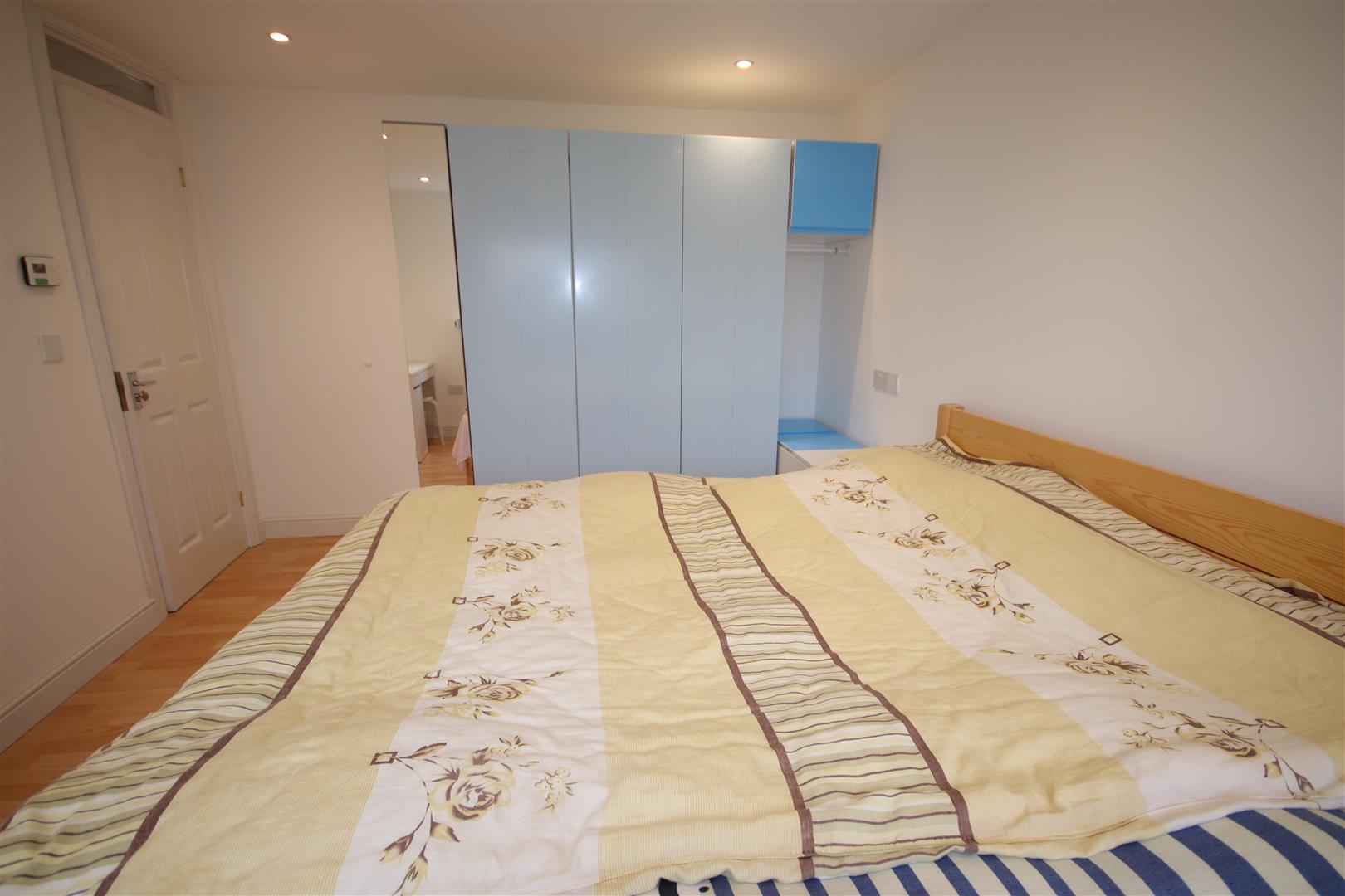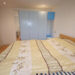 Rear double bedroom with long chest of drawers and storage unit