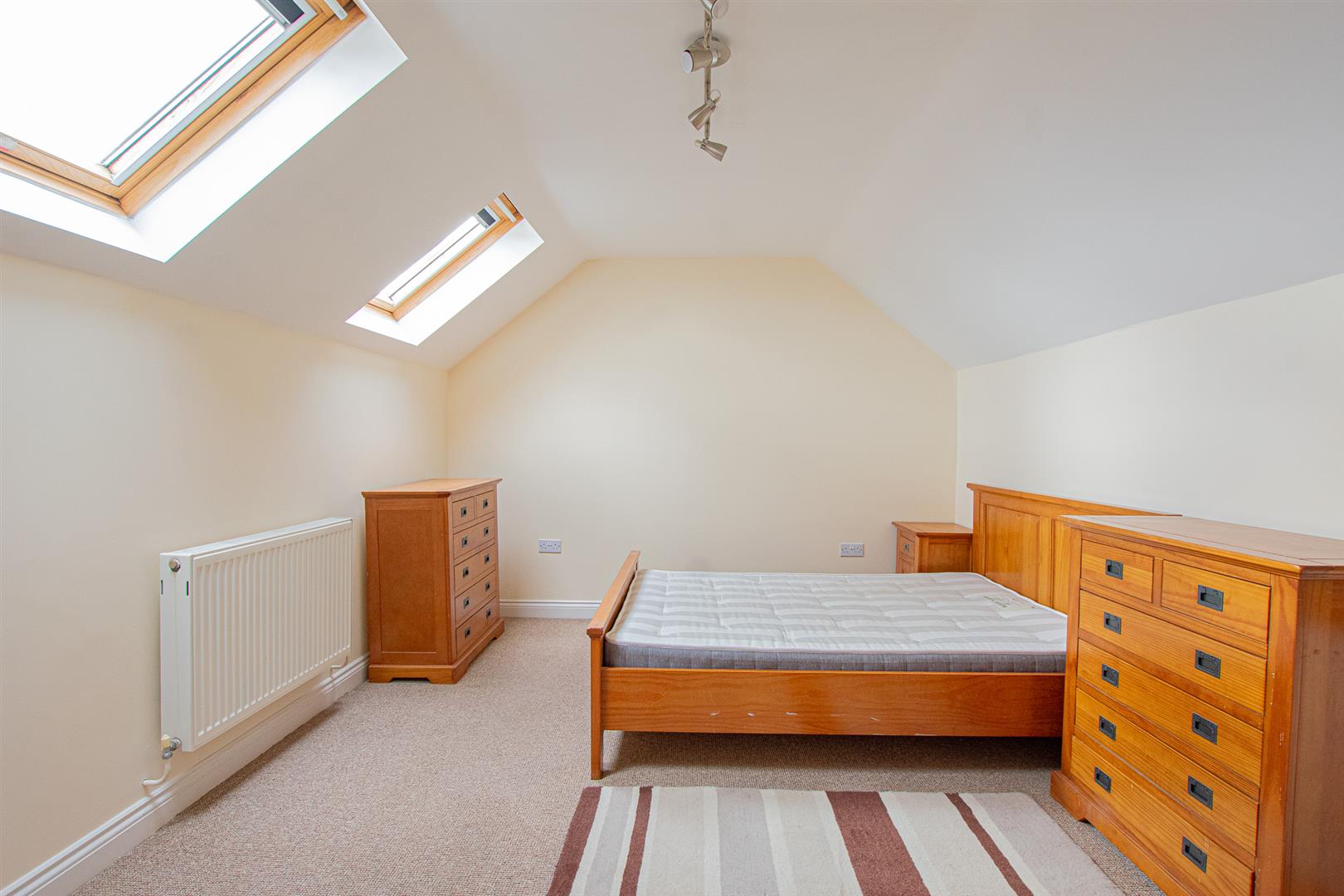 Second floor double bedroom with Velux windows and separate toilet on landing