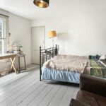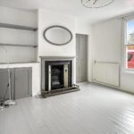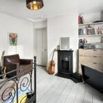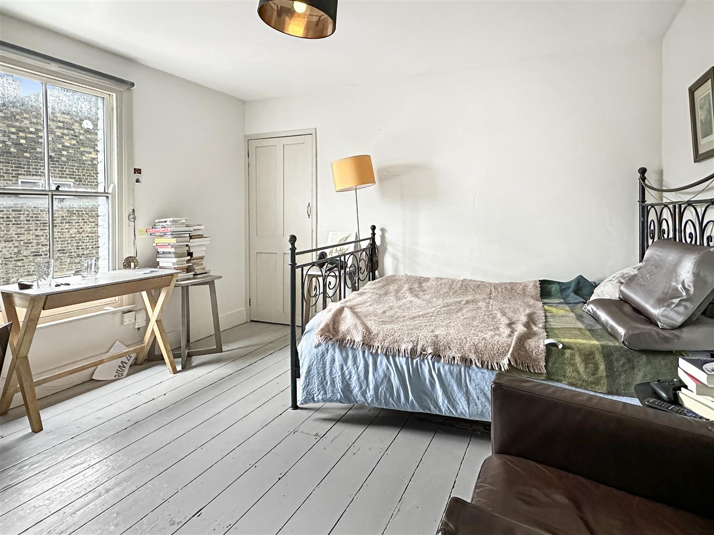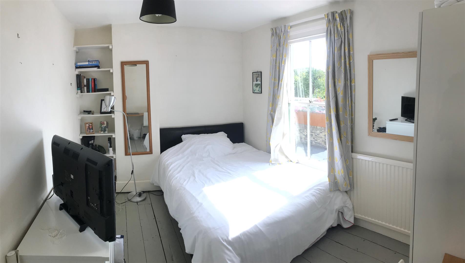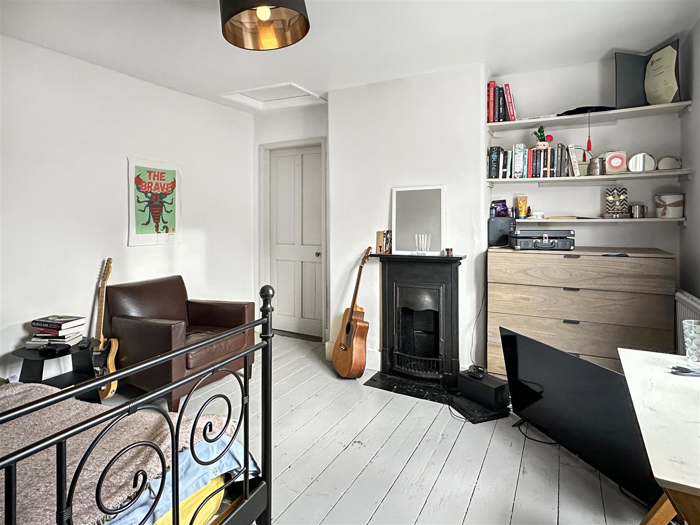 On the first floor, there are 2 double bedrooms. The principal bedroom has wooden floorboards, cast iron original fireplace, large storage cupboard, sash window to front aspect. Bedroom 2 is a double with wooden floorboards and sash window to the front aspect.