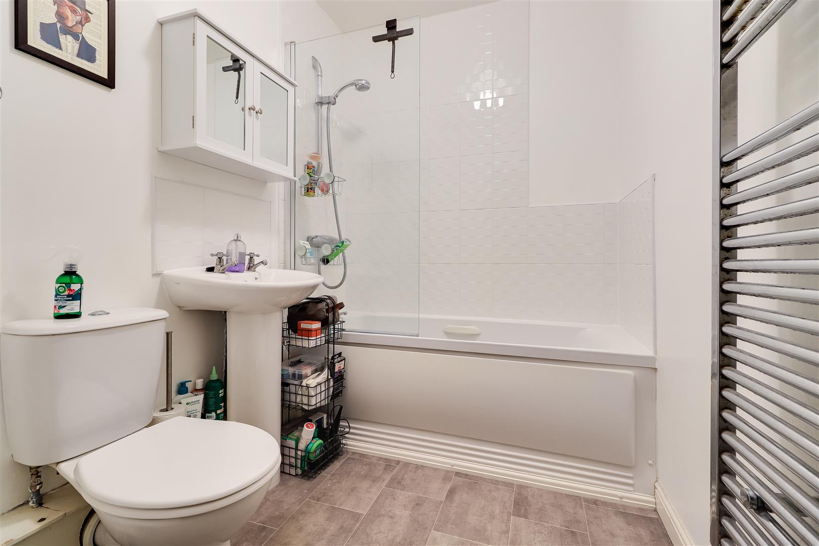 Bedroom one is a generous double room with built in wardrobes and double French doors to a Juliet balcony. Bedroom two is another well proportioned room and there is a three piece bathroom with shower over the bath, part tiled walls and a chrome heated towel rail.