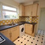 Rear kitchen leading through to ground floor bathroom. The kitchen is equipped with a gas hob and electric oven with extractor hood, washing machine and fridge freezer