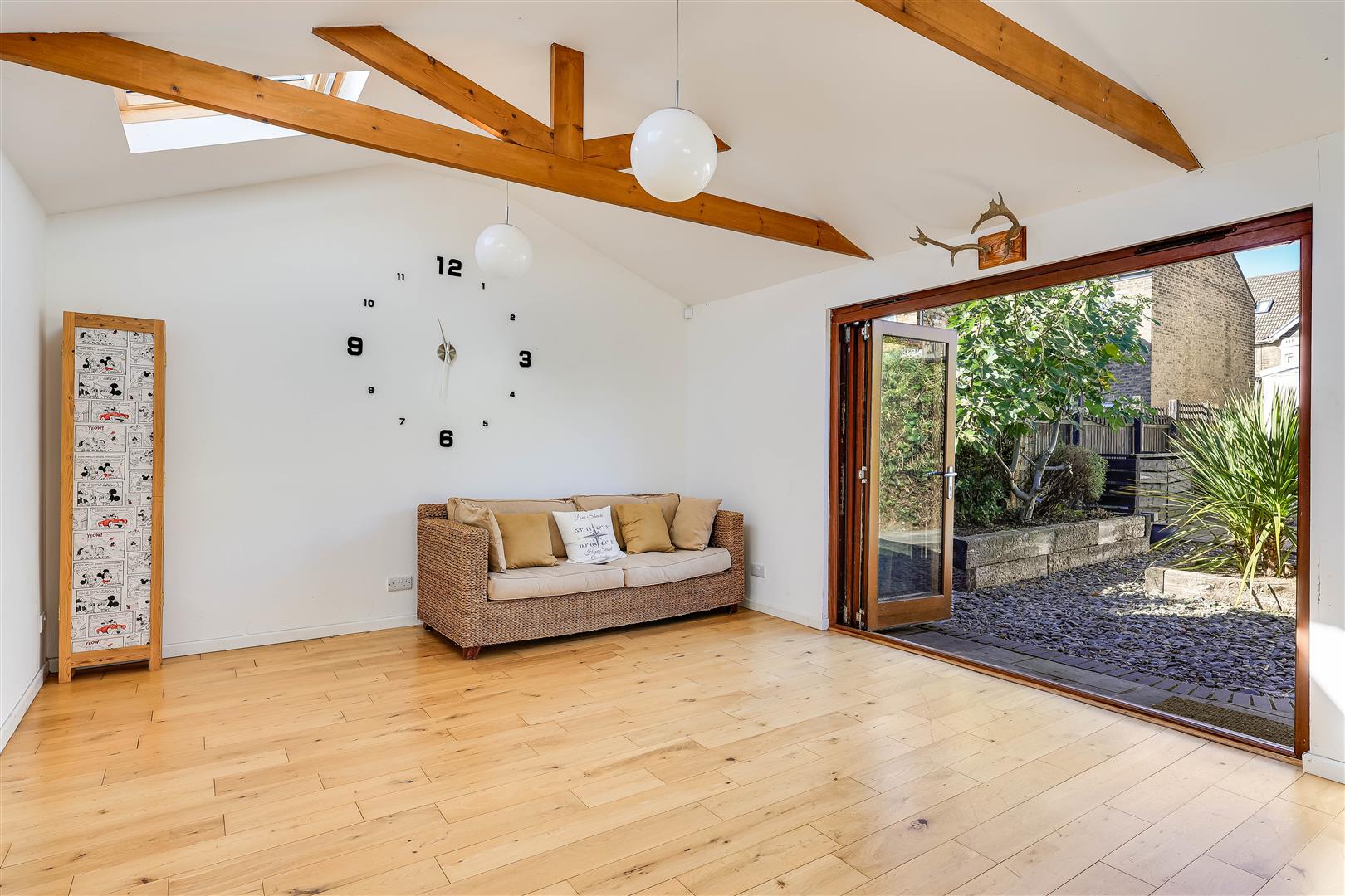 The detached studio is a fabulous addition with bi-fold doors, rooflights and wood flooring. There is electric heating and power/lighting.