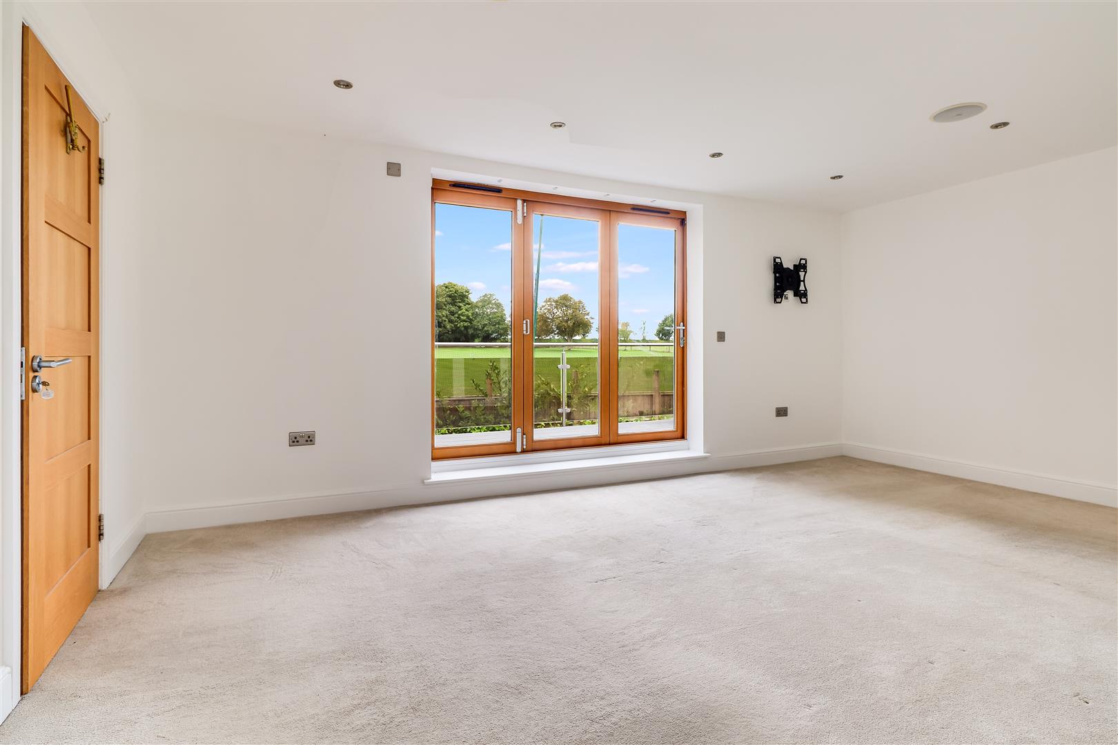 The first floor accommodation is equally impressive with three bedrooms and three bathrooms as well as stairs rising to the second floor. The beautifully proportioned principal bedroom suite includes a dressing room, ensuite shower room and superb balcony terrace offering fine views across the cricket field. Bedroom two is another sizable suite benefitting from dressing room and ensuite shower room. Bedroom three is a generous double room with built in wall to wall wardrobes. The extravagant family bathroom features a five piece suite with standalone bath, separate shower cubicle, twin vanity sinks and w.c.