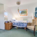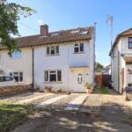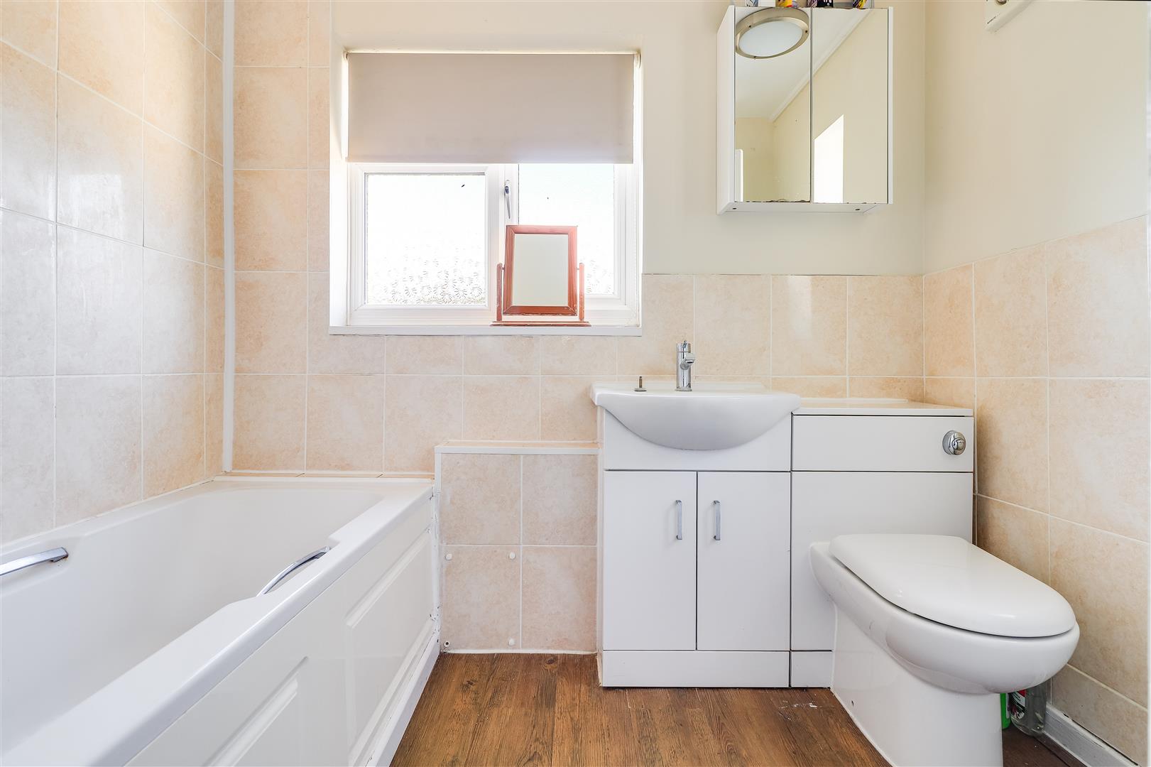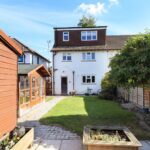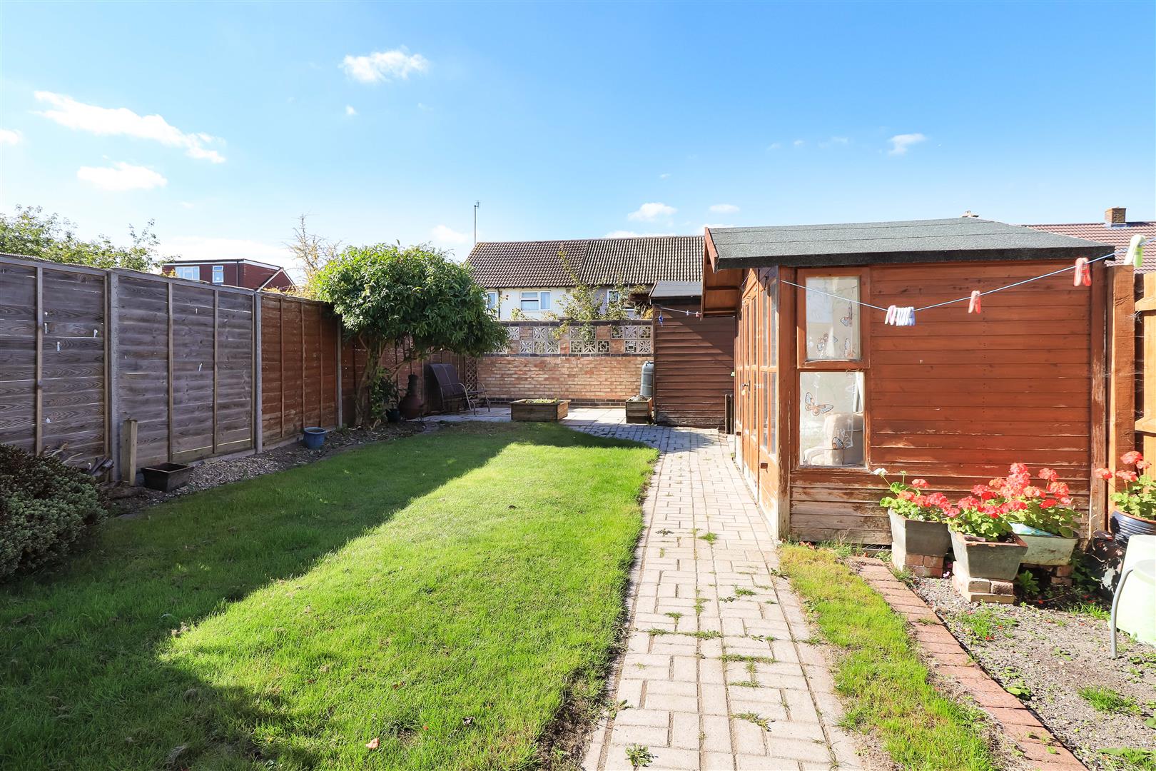 Outside is a driveway and side pedestrian access. The rear garden is a generous size with lawn, a paved terrace, a summer house, and a shed. Timber fencing. The house is non-standard construction and is believed to be concrete laing Easi-form from 1955.