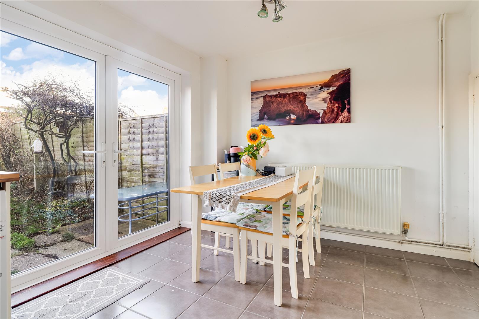 Outside, the property is set back from the road, and a pathway leads to the front door. There is a garage and further off-street parking close by. The rear garden has a patio area; the remainder is laid to lawn. A pathway leads to the garage at the foot of the garden; a secure timber gate gives rear access.