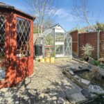 The sunny rear garden is enclosed with lawned and paved areas in addition to planting, a timber summer house, greenhouse and fish pond. There is outside lighting and a tap and double gates from the front allowing vehicular access to the covered car port and single brick built garage.