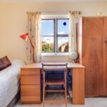The mezzanine level can take a mattress for occasional use and provides useful storage with an access hatch to the store room.
