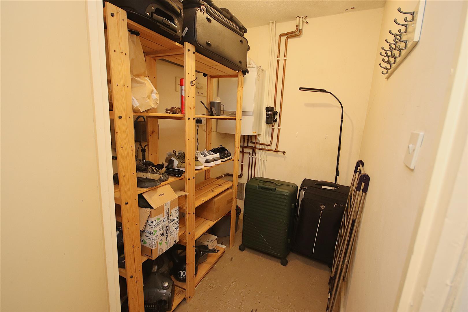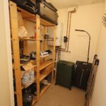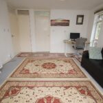 Spacious living/dining room leading to kitchen with additional storage cupboard