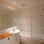 First floor family bathroom with shower over bath, WC and hand basin