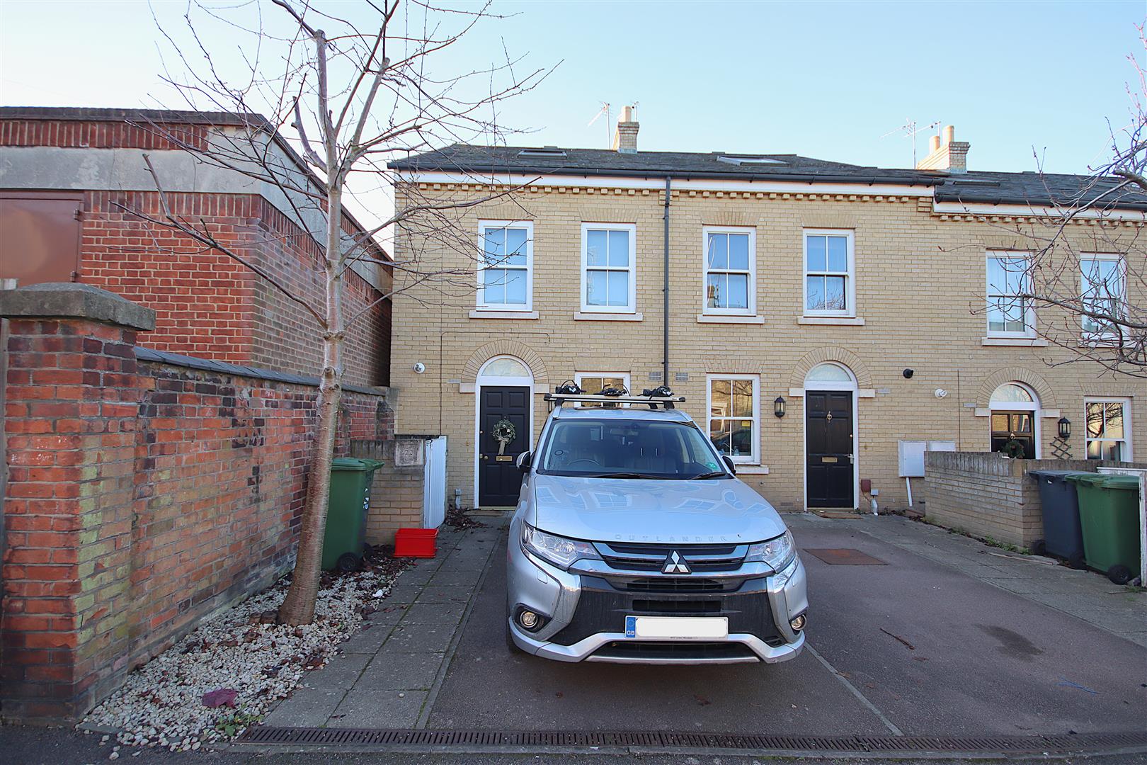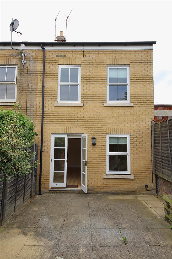Rear enclosed paved garden and off road parking with bin store