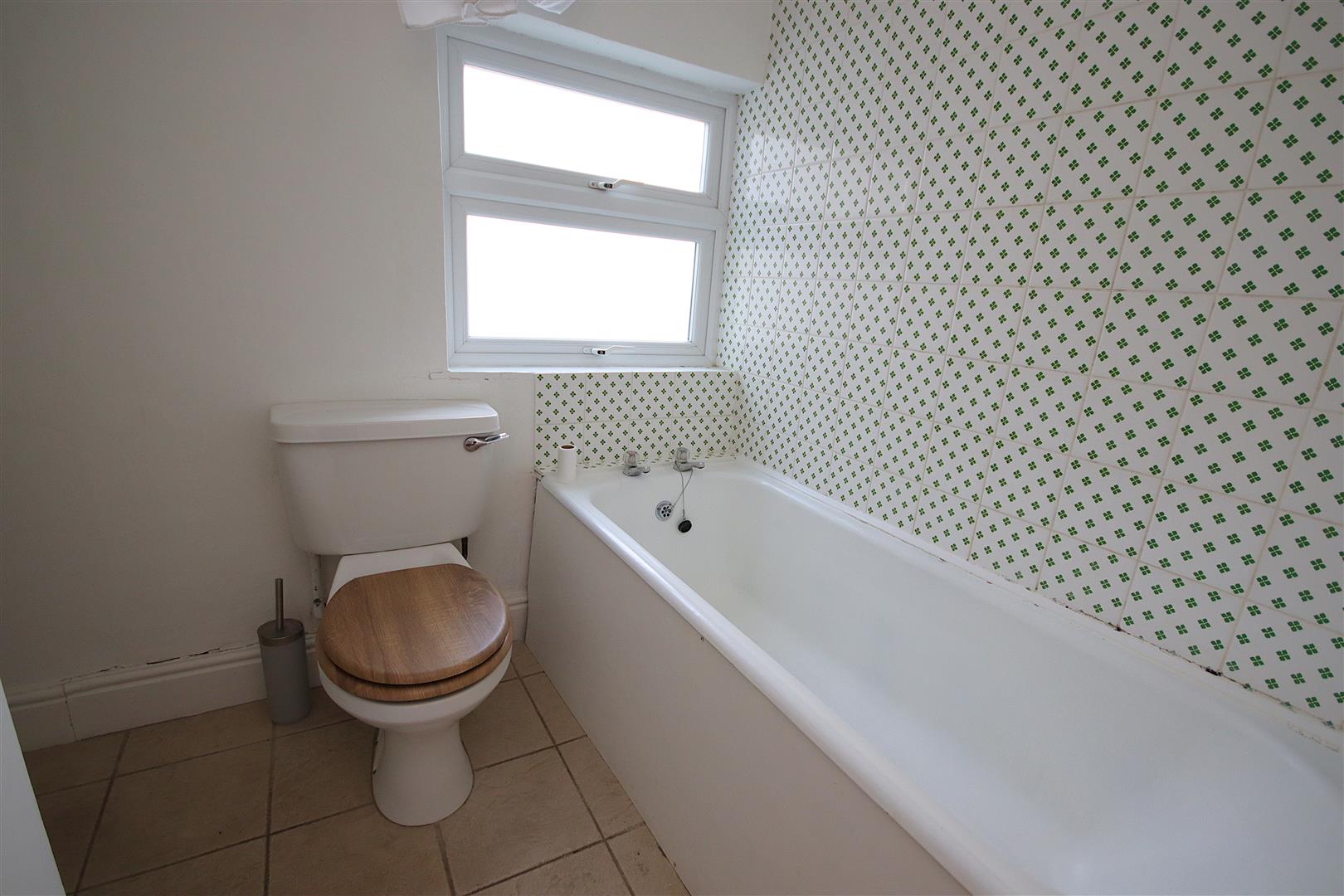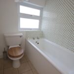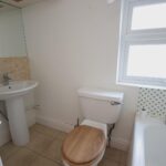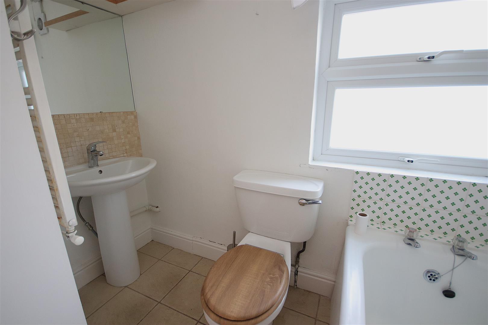 First floor bathroom with shower over bath, WC, hand basin with mirror and heated towel rail
