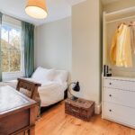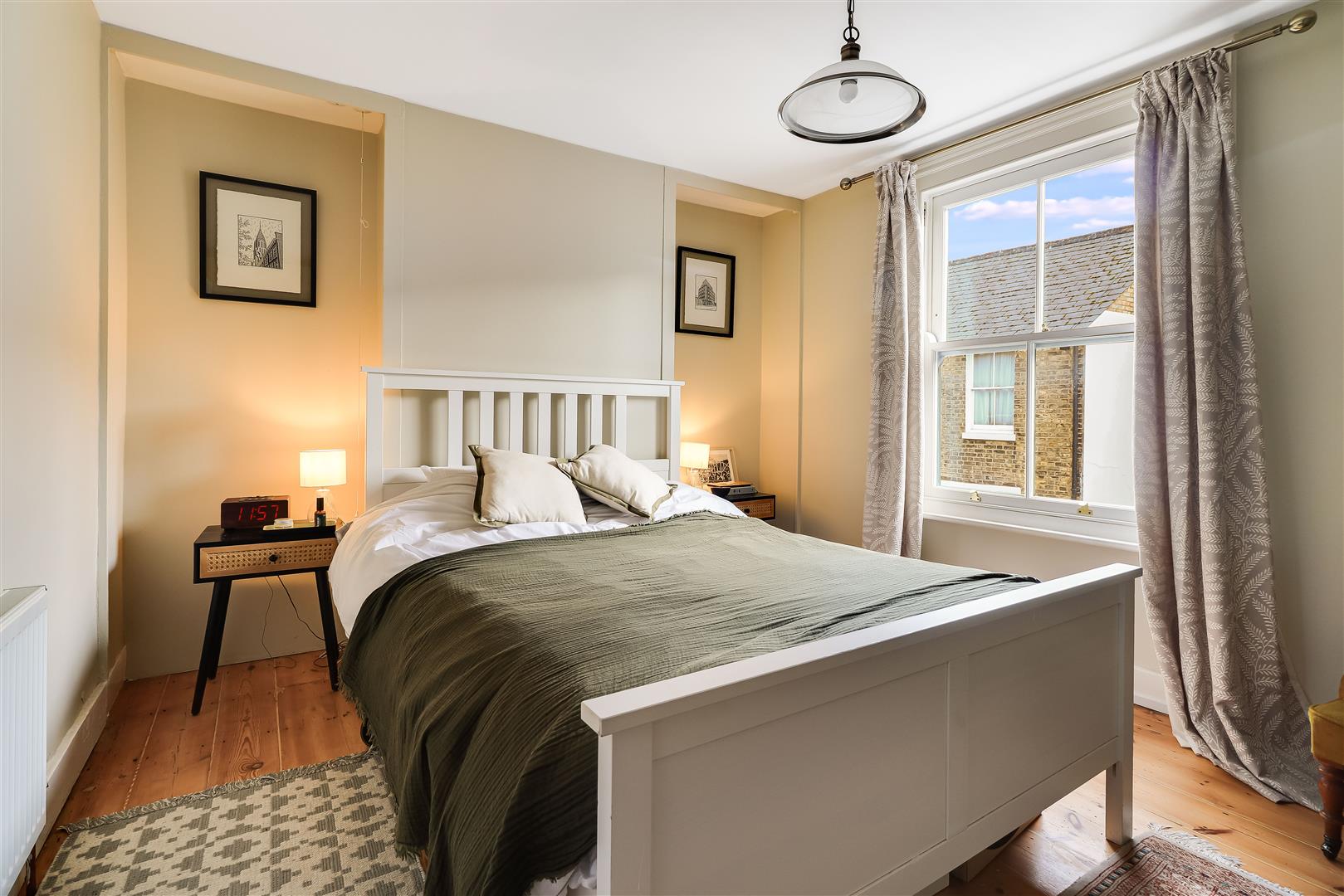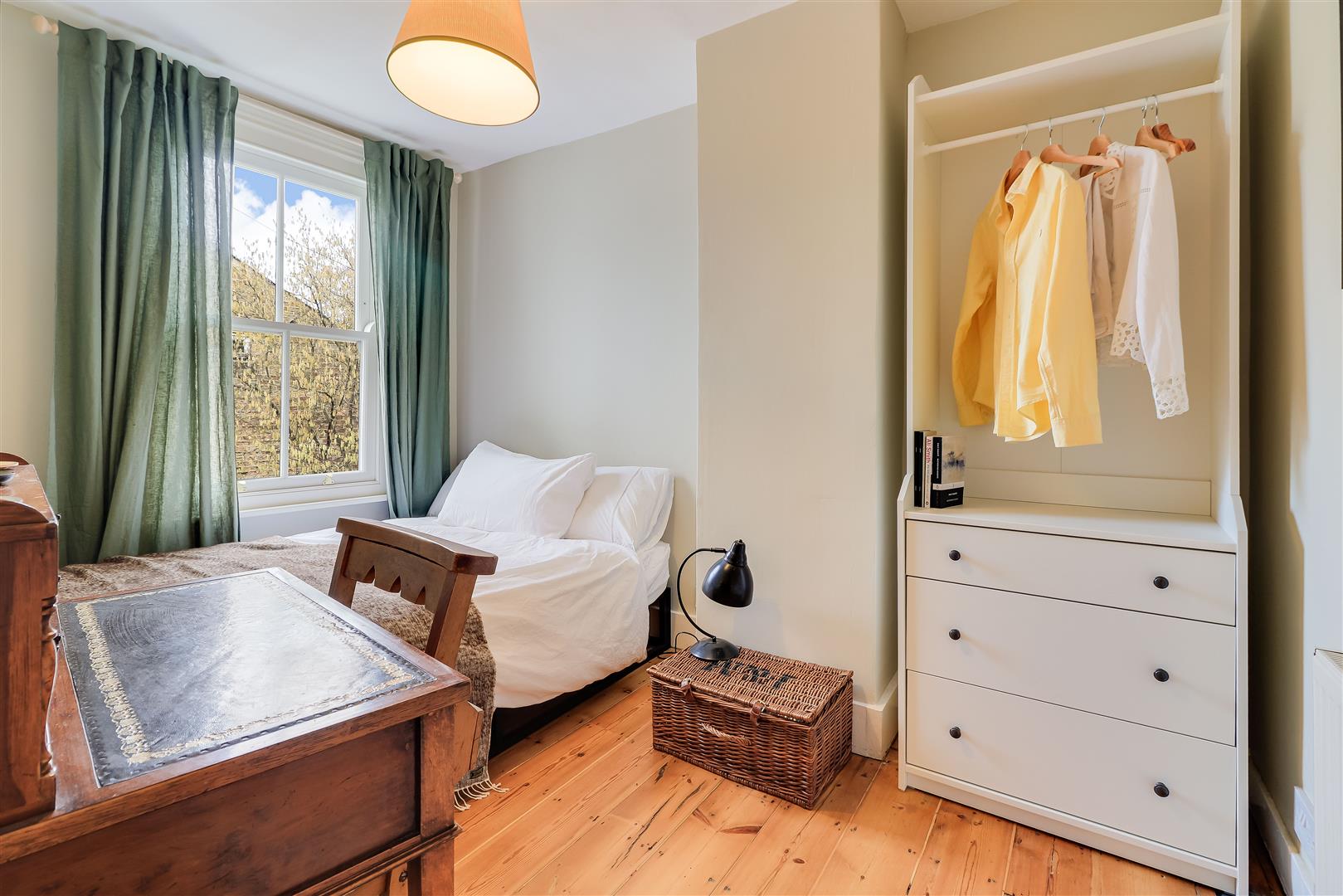Bedroom one spans the width of the house at the front with a bespoke double glazed timber sash window and wall to wall fitted wardrobes.
