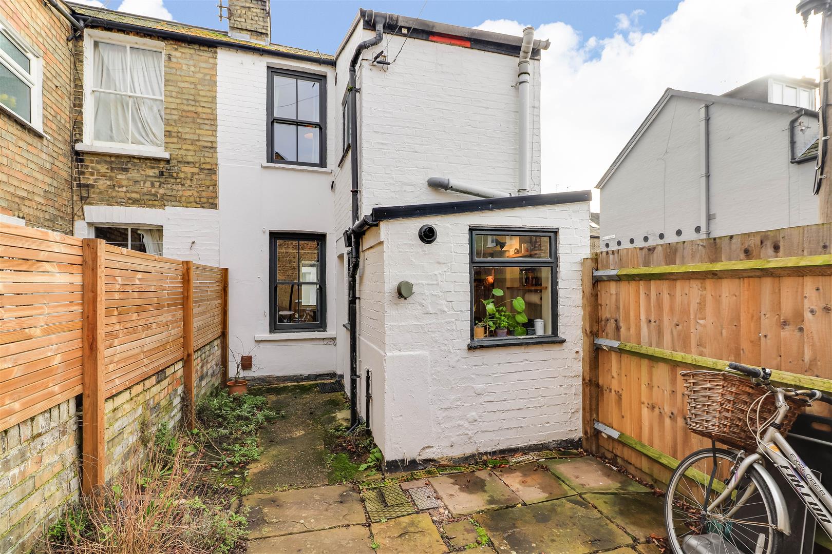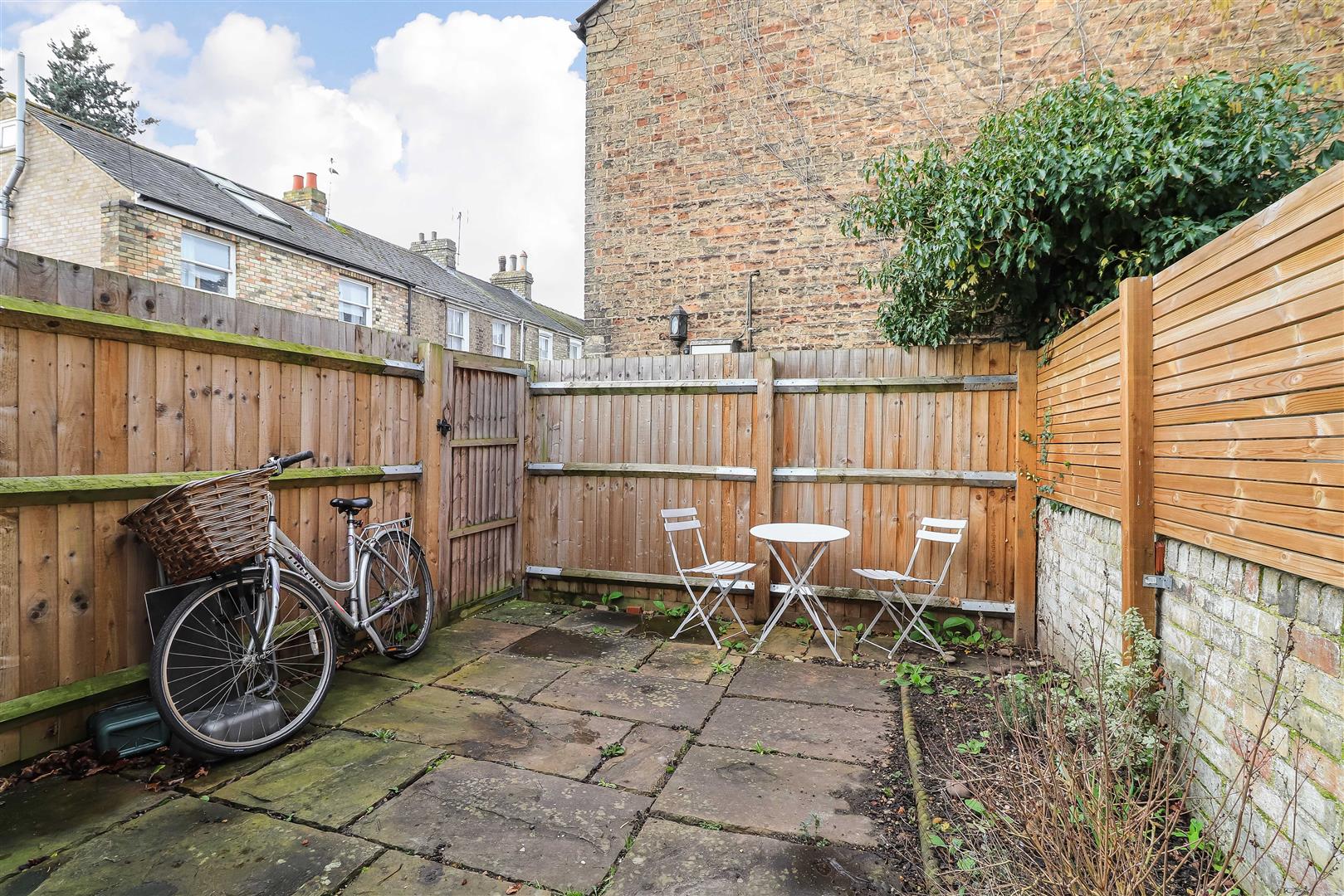 Outside - The enclosed low maintenance paved courtyard garden has planting borders and a private access gate.