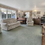 Outside is a mature plot with detailed boundaries giving privacy, and it is predominantly laid to lawn with trees and shrubs. A generous front garden accessed via a 5-bar gate to the driveway. There is a carport with an electric door leading to a single garage, PV solar panels, and garden stores.