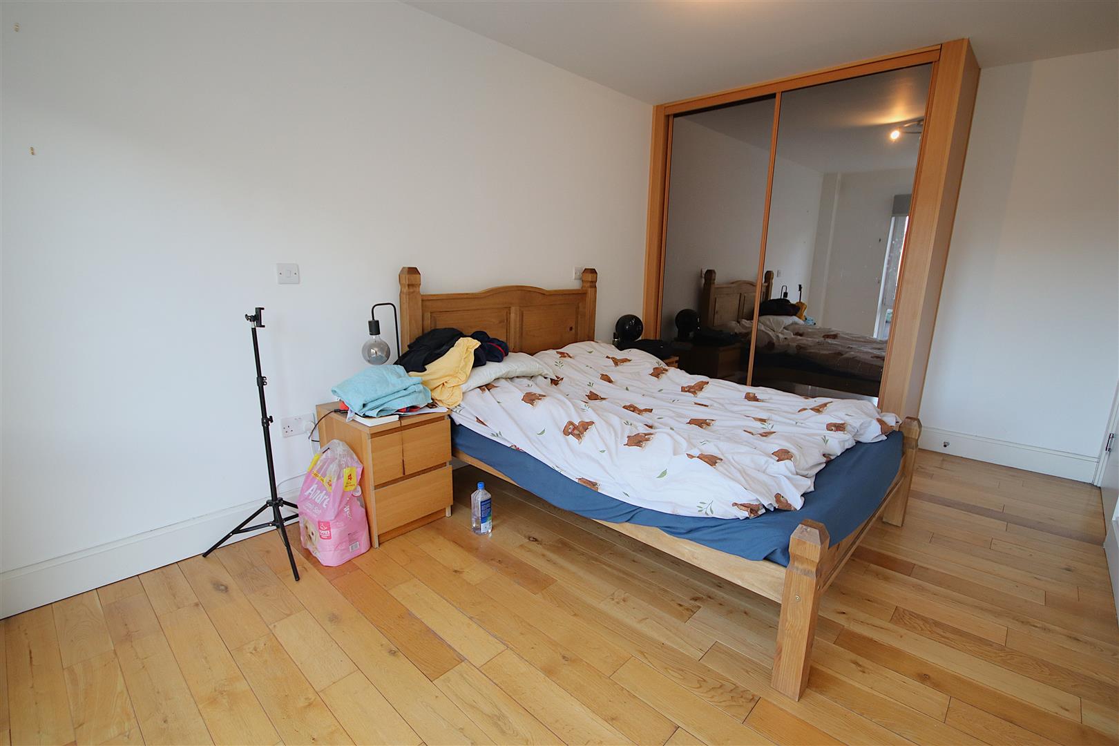 Second double bedroom with fitted wardrobes and single bed with mattress.