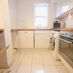 Kitchen fitted with electric hob and oven, dishwasher, fridge and washing machine