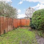 Outside, a front garden with shrubs and a path to the front door. Side access to the rear garden with shrubs and a lawn.