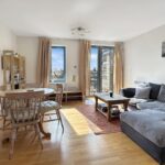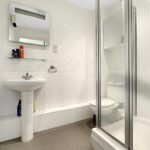 Bedroom one is a large double room with access to a further balcony which runs the full width of the apartment. There is a three piece ensuite shower room which is fully tiled. Bedroom two is another generous double room and there is a three piece bathroom with modern tiling and a shower over the bath.