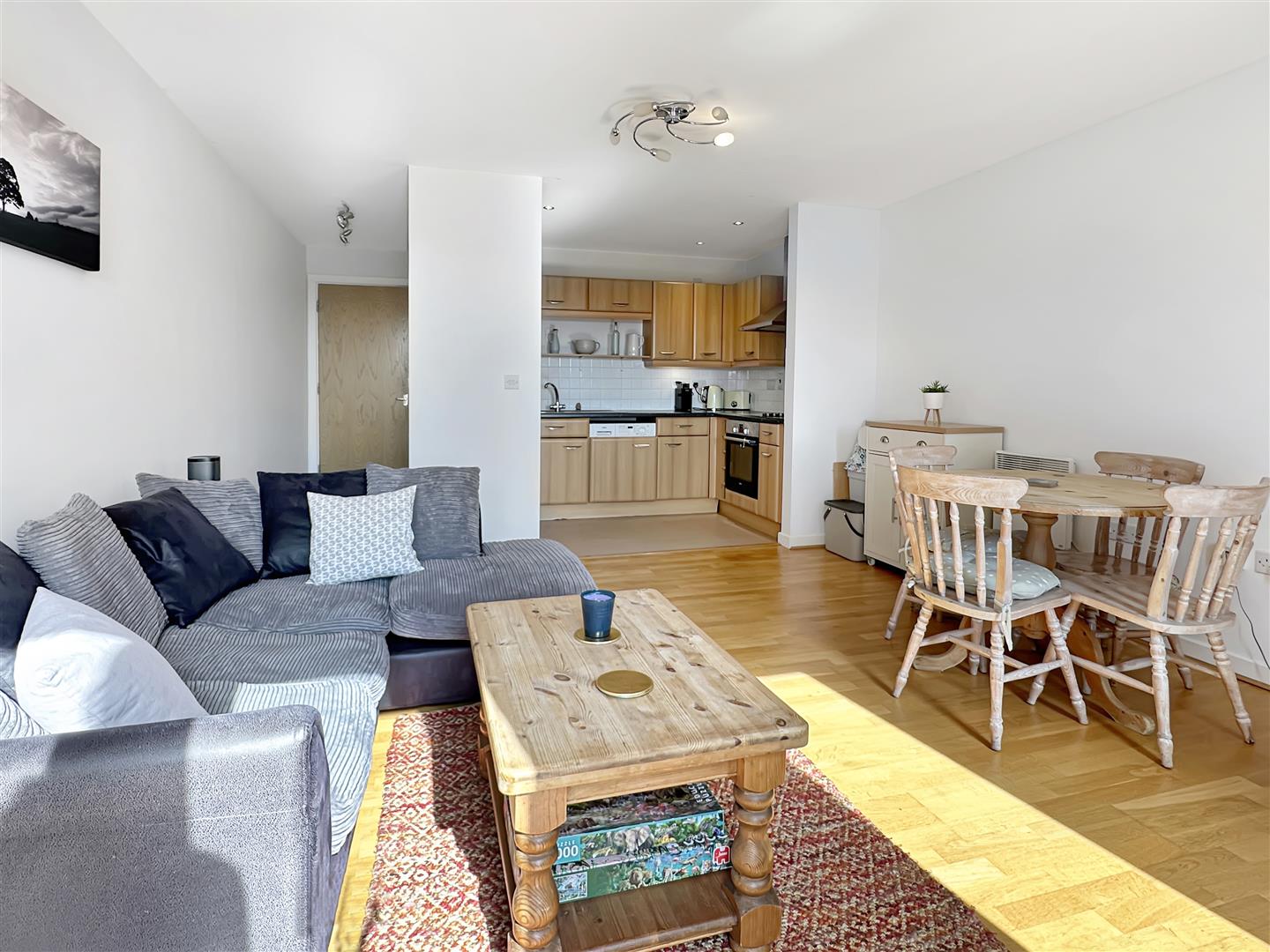 The entrance hallway has plenty of built in storage and an intercom entry phone system. The living accommodation is positioned quietly at the back of the building with a window and double doors leading out to a balcony which offers fine southerly views towards Gog Magog. There is an opening to the kitchen area which comprises a range of wall and base units and work surfaces with integrated appliances (please note the washing machine does not function).