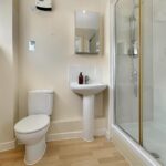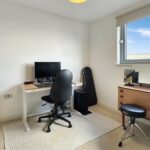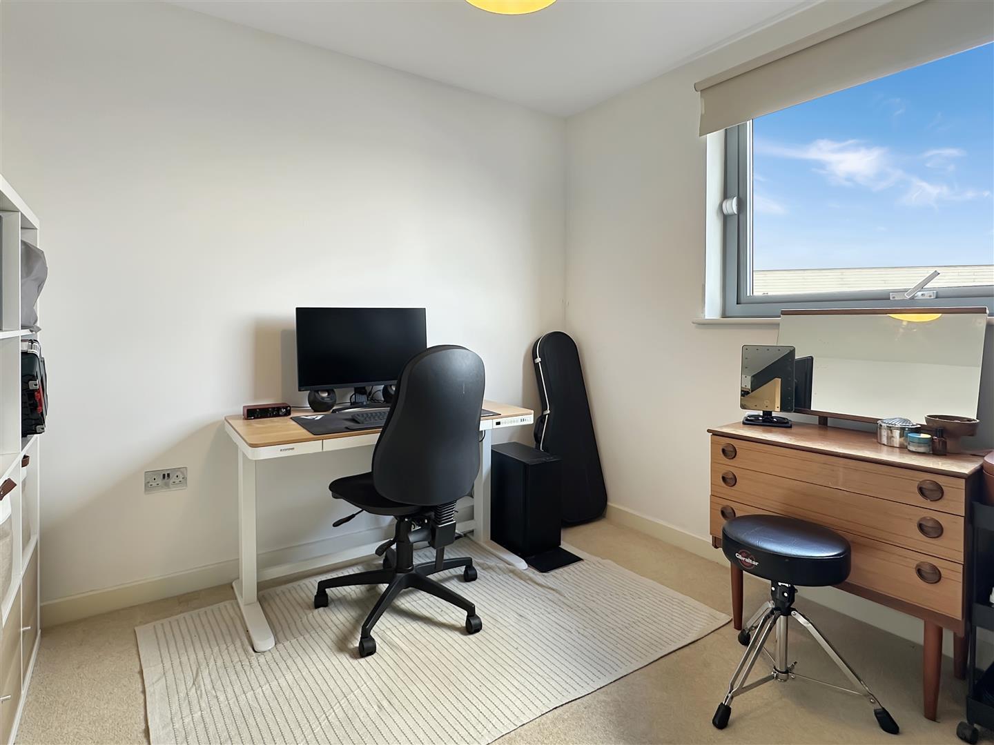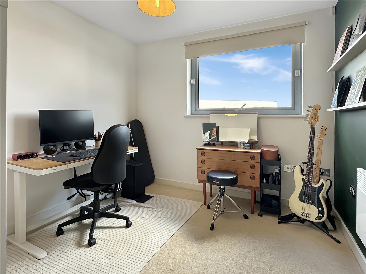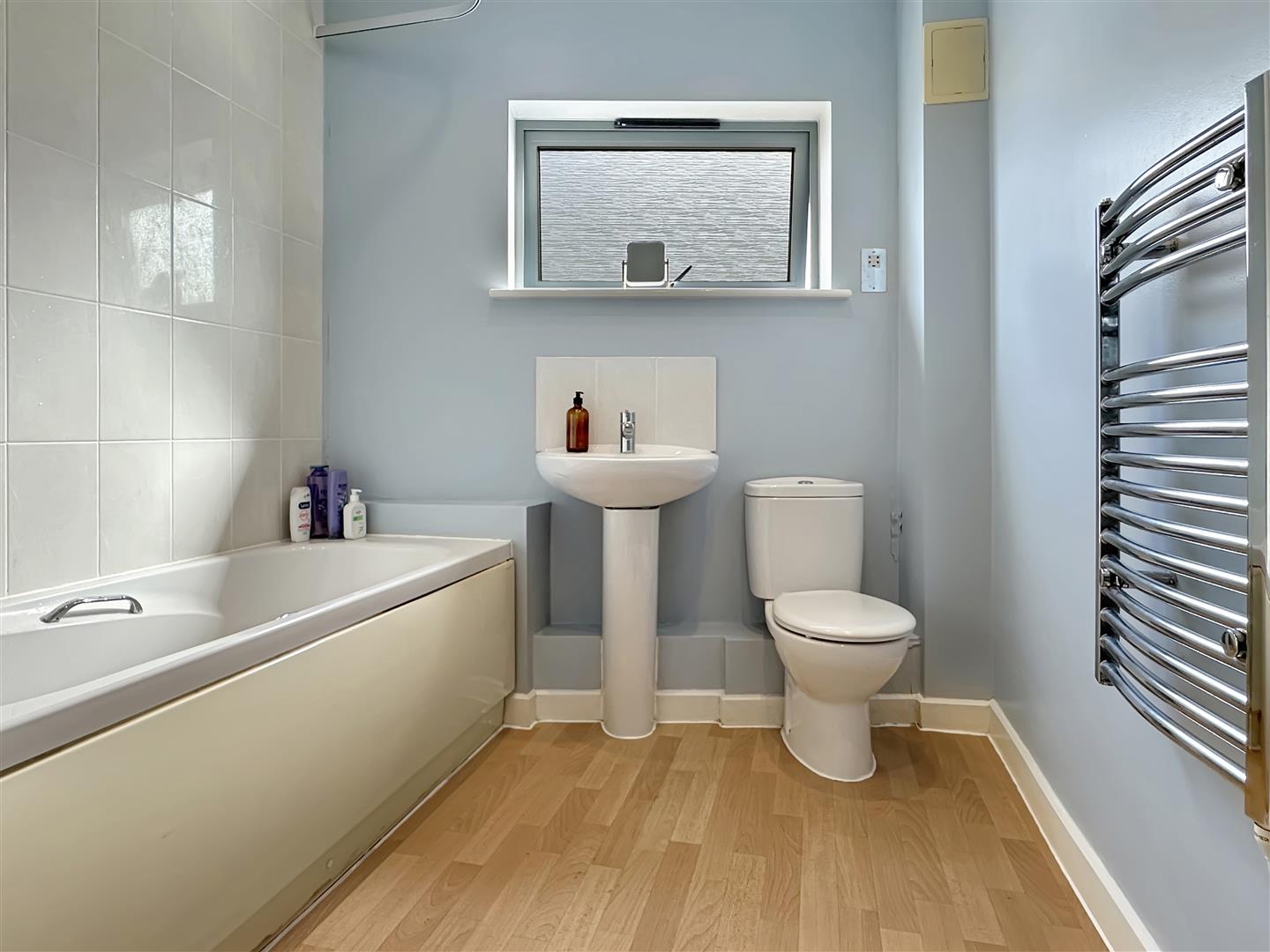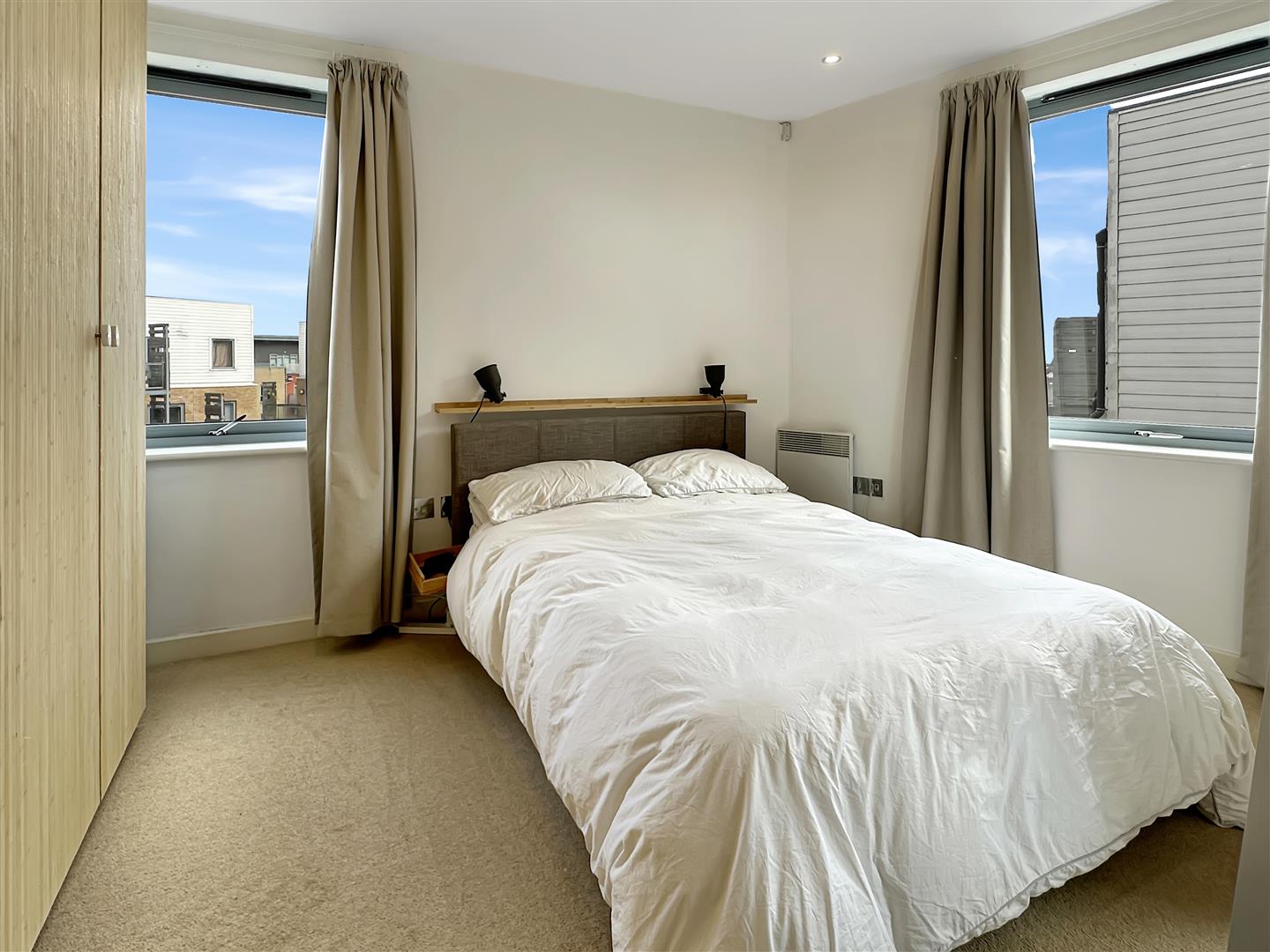 Bedroom 1 is a spacious double with a dual aspect, range of fitted wardrobes and electric panel radiator. Ensuite shower room with shower cubicle, hand wash basin, WC and double-glazed window. Bedroom 2 a double room with double glazed window to front elevation and electric radiator. Bathroom with panel bath and shower over, hand wash basin, WC, tiled surrounds, double glazed window and electric towel rail.
