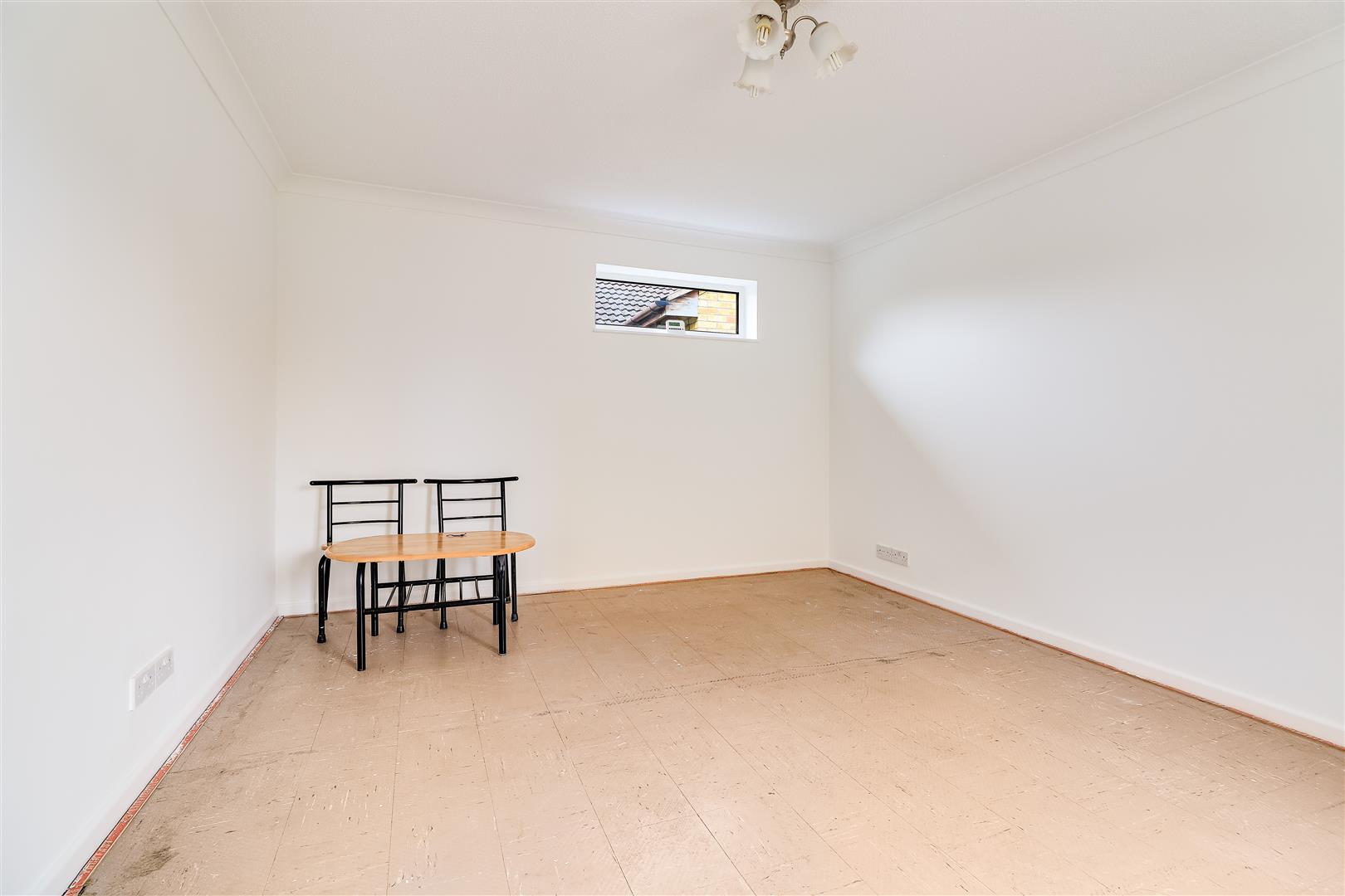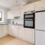 The living room has dual aspect windows and the fitted kitchen comprises a range of wall and base units teamed with an integrated electric double oven and hob, plumbing for washing machine and space for a fridge freezer.